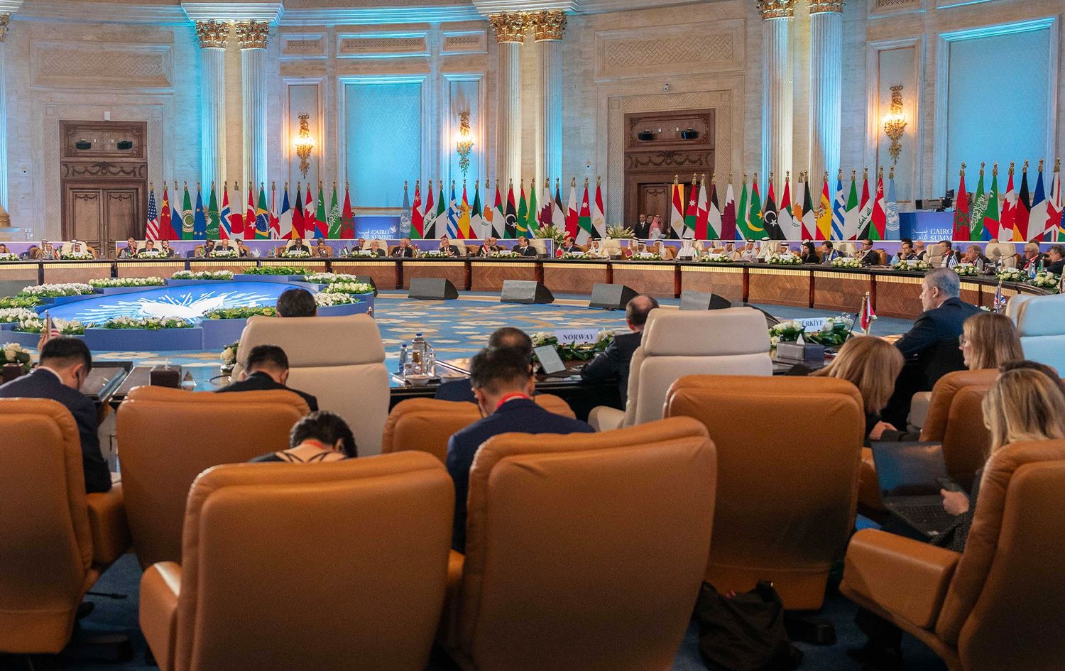 Mısır Cumhurbaşkanı Abdülfettah el-Sisi, zirvenin açılış konuşmasını gerçekleştirdi. Sisi, ABD Başkanı Joe Biden ile Refah Sınır Kapısı'nın Birleşmiş Milletler ve Filistin Kızılay'ı gözetiminde sürekli olarak işletilmesi konusunda anlaştıklarını söyledi. Sisi ayrıca, "Mısır, Refah Sınır Kapısı'nı hiçbir zaman kapatmadı" dedi.
