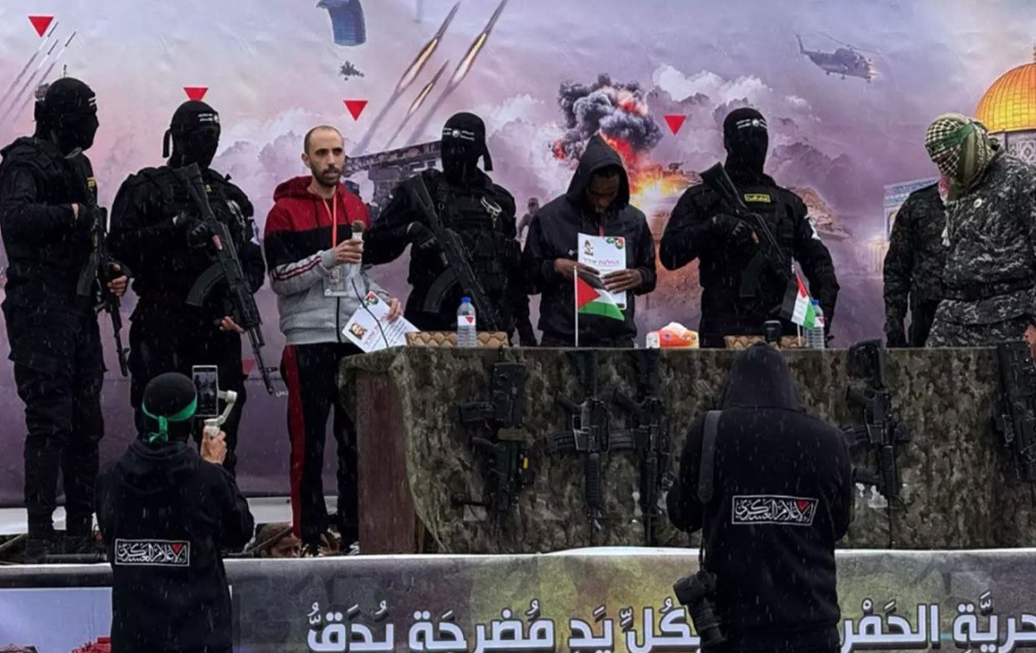 Teslim töreninin gerçekleştirildiği noktada kurulan platformda Kızılhaç yetkilisi ile Kassam Tugayları mensubu, esirlerin teslimine ilişkin belge imzaladı. Serbest bırakıldıklarına dair belge verilen esirler, platforma çıkarıldı. Daha sonra Kızılhaç aracına bindirilen esirler, Gazze'deki İsrail güçlerine teslim edilmek üzere yola çıkarıldı.