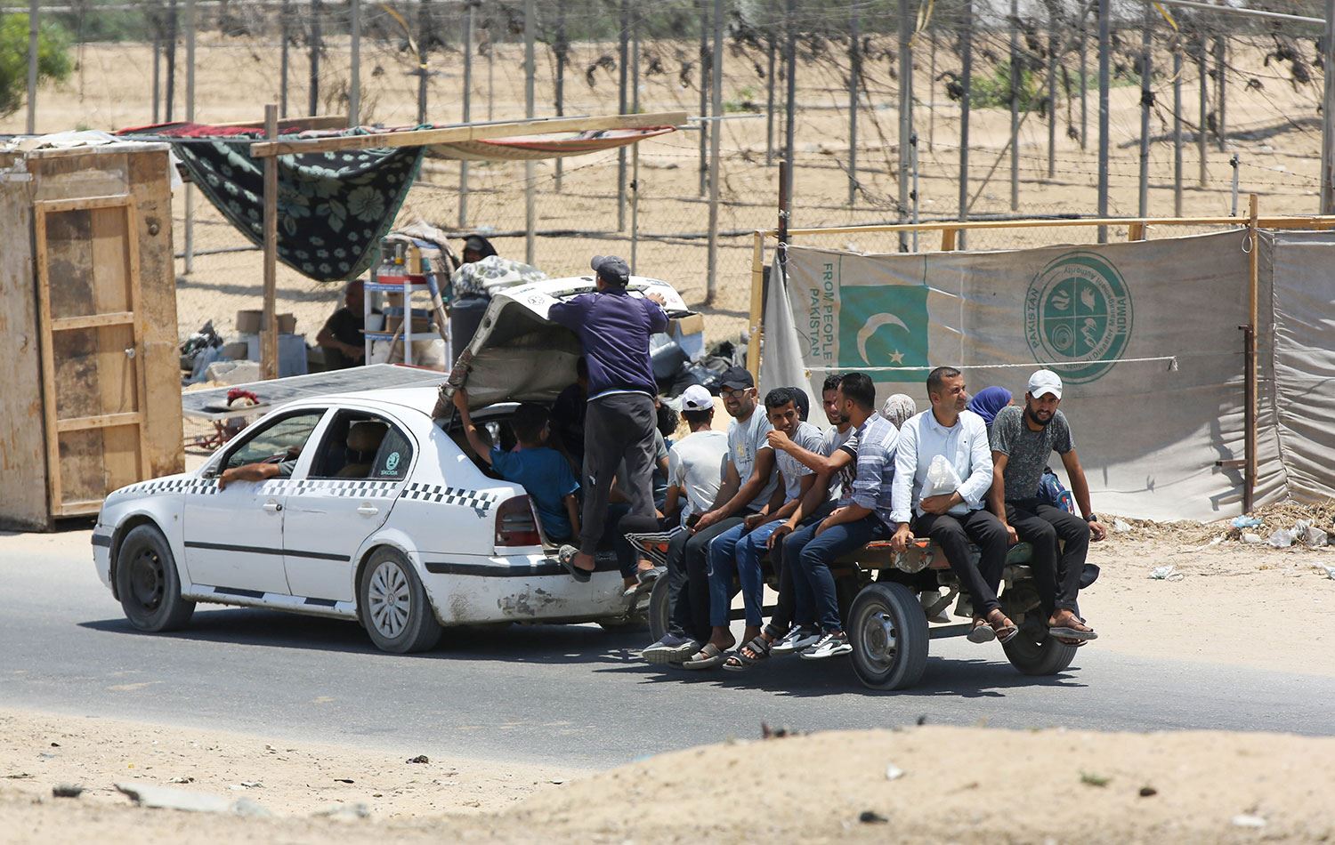 İsrail ordusuna ait askeri araçların Refah'ın el-Mavasi bölgesine ilerlemesi üzerine çok sayıda Filistinli aile, yanlarına alabiledikleri eşyalarıyla Han Yunus kentine göç etti. / AA