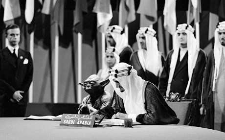 Suudi Arabistan'ın ders kitaplarında, San Francisco'da Birleşmiş Milletler Sözleşmesi imzalanırken Kral Faysal'ın yanına yerleştirilen Star Wars karakteri Yoda fark edilince ders kitaplarından kaldırıldı.