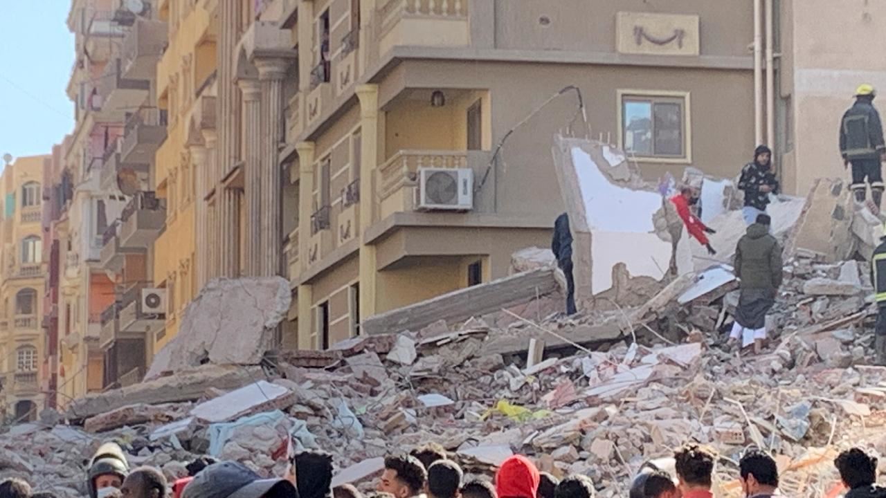 Mısır'da yaşanan ölümlü tren kazasının ardından ülkede bu kez de 10 katlı bir bina çöktü.