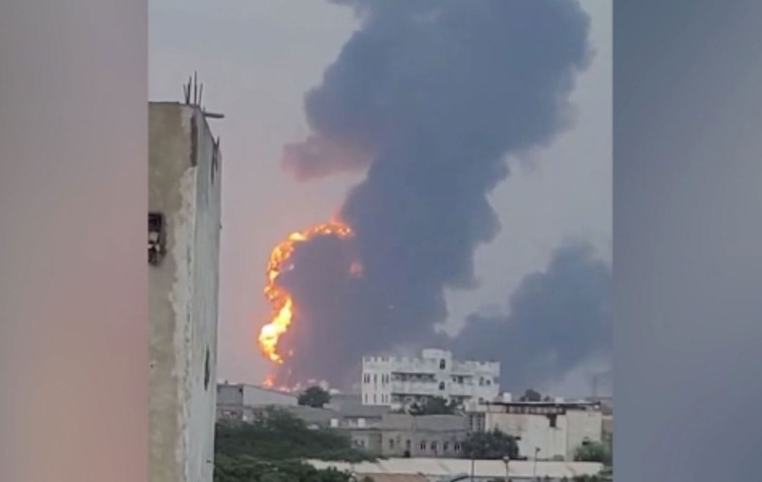 Sosyal medya aktivistlerinin yayınladığı görüntülerde, İsrail saldırısı nedeniyle Hudeyde limanında büyük bir yangın çıktığı görülüyor.