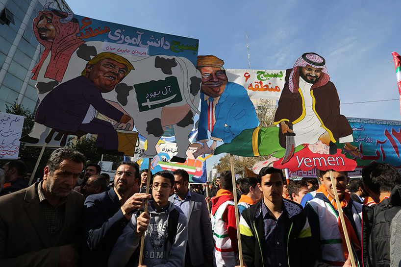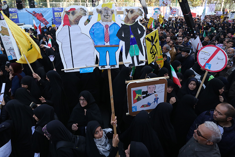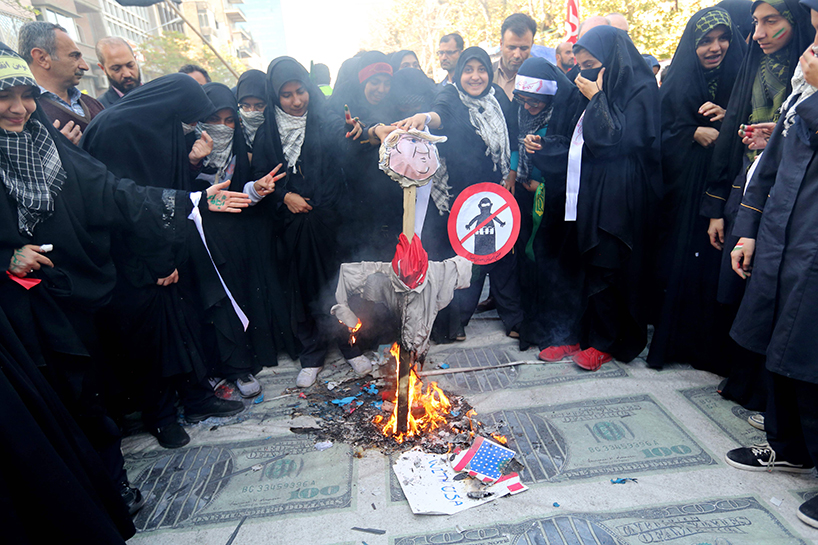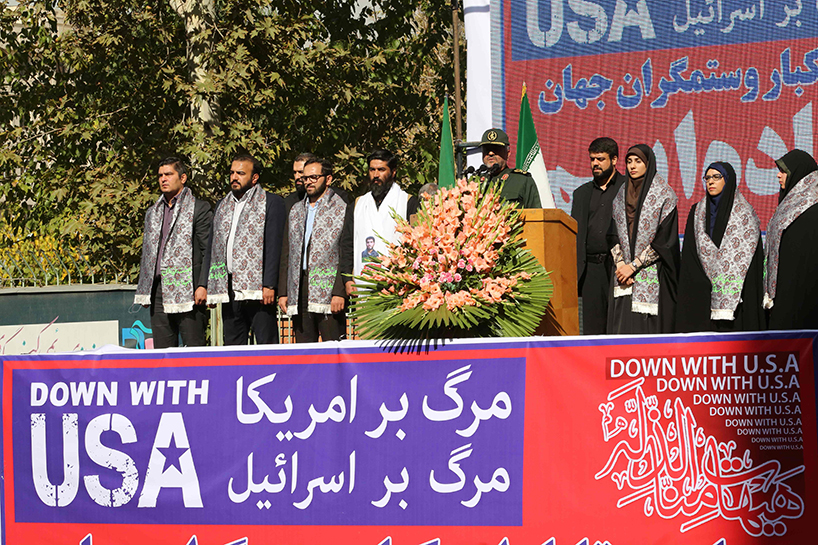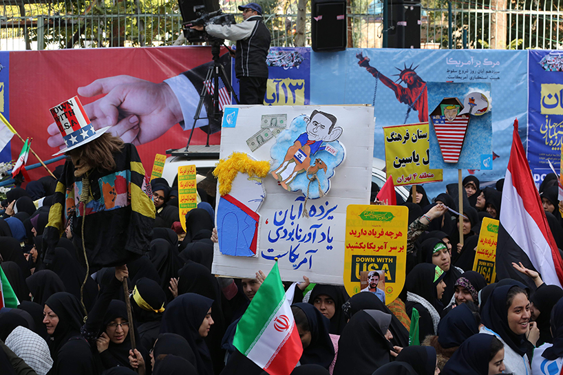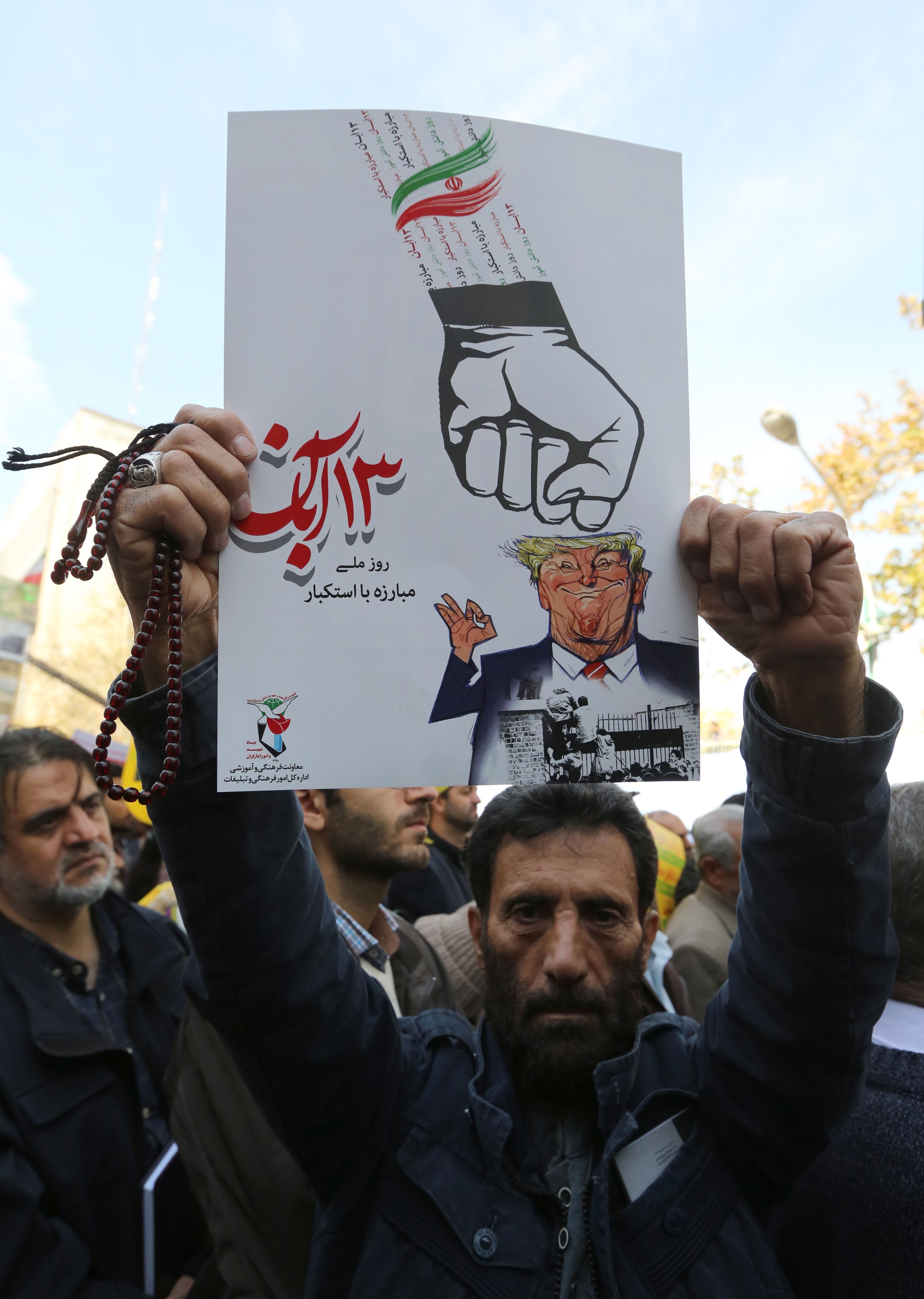 Başkent Tahran’da ise ABD Büyükelçiliği’nin işgalinin 39’uncu yıl dönümünde toplanan göstericiler, “Kahrolsun Amerika!” sloganlarıyla İran’a karşı yaptırımları protesto etti.