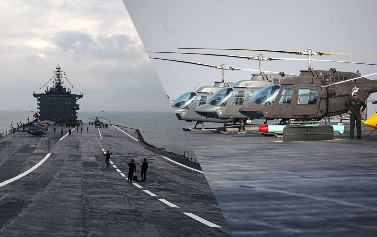 Devlet televizyonunun yayınladığı görüntülerde, bir ticari gemiden dönüştürüldüğü kaydedilen savaş gemisinin pistinde en az 5 helikopter ve 8 insansız hava aracının bulunduğu ve "Kahir-313" adı verilen İHA'ların pistten havalandığı görüldü.