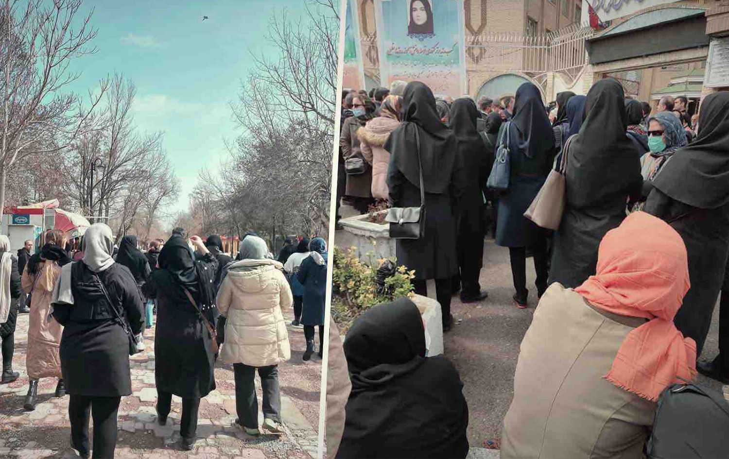 İslami Kuruluşlar Öğrenci Birliğinin, Telegram sayfasından yayınladığı görüntülere göre, Tahran’daki Emir Kebir ve Allame Tabatabai üniversiteleri ile Tebriz Tıp Bilimleri Üniversitesi öğrencileri bulundukları kampüslerde, okullara yönelik saldırılara tepki gösterdi. Öğrenciler, aynı zamanda zehirlenmelerin önüne geçilememesi nedeniyle de yetkilileri protesto etti.