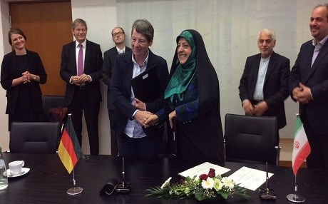 Almanya Çevre Bakanı Barbara Hendricks ile İran Cumhurbaşkanı Yardımcısı Masume Ebtekar'ın el sıkıştığı sırada çekilen bir fotoğraf İran’da günün konusu oldu.