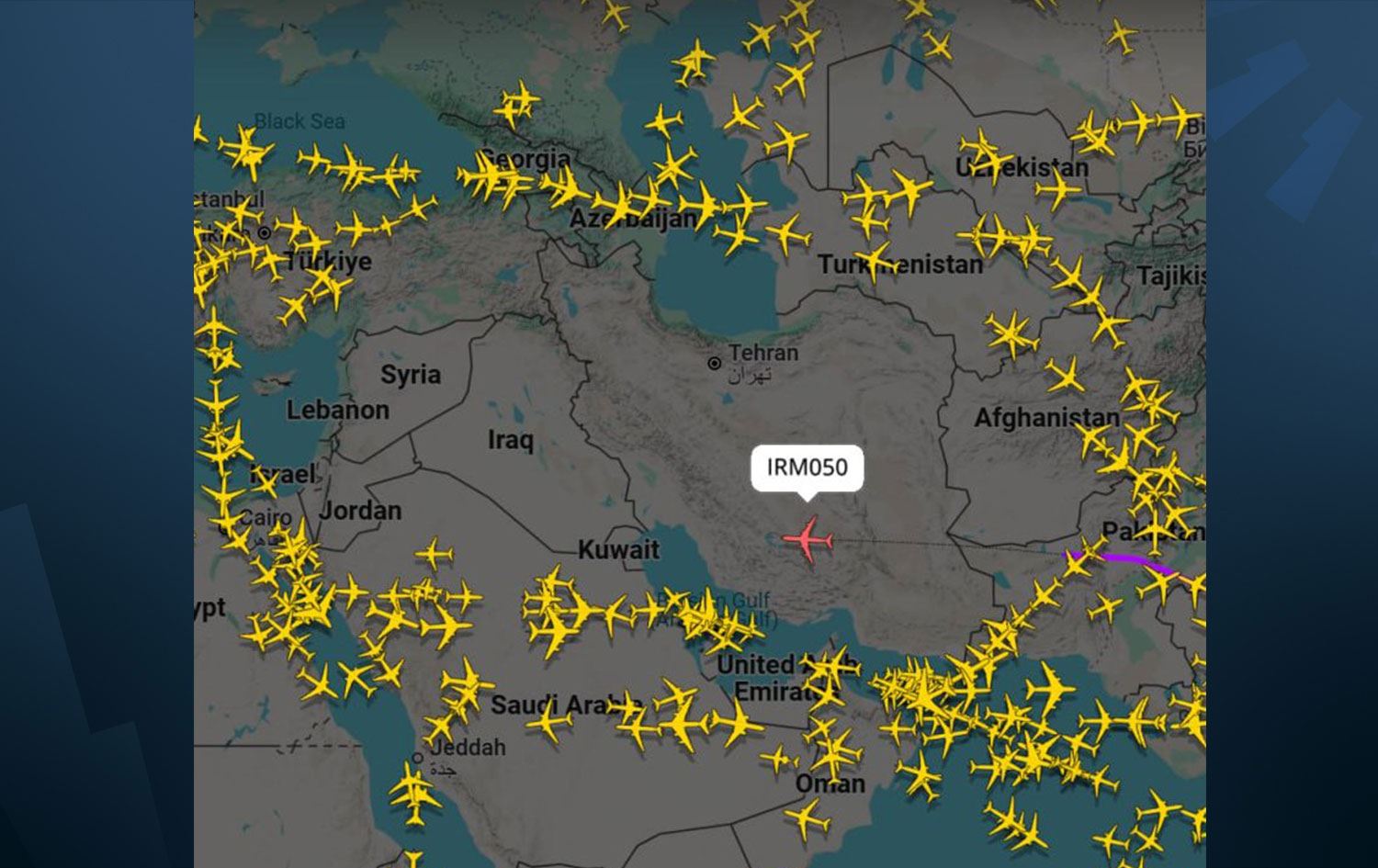 Orta Doğu üzerindeki hava sahasının tamamen boş olduğu dakikalarda tek başına uçan IRM50'yi, dünyanın dört bir yanından binlerce kişi, uçağın vurulma endişesiyle FlightRadar ve FlightAware gibi uçuş takip sitelerinden canlı izledi.
