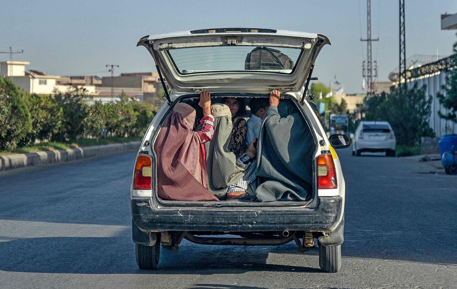 9 Eylül 2024'te Kandahar'da yerel bir taksinin arkasında yolculuk eden burkalı Afgan kadınlar. / Fotoğraf: Sanaullah Seiam / AFP