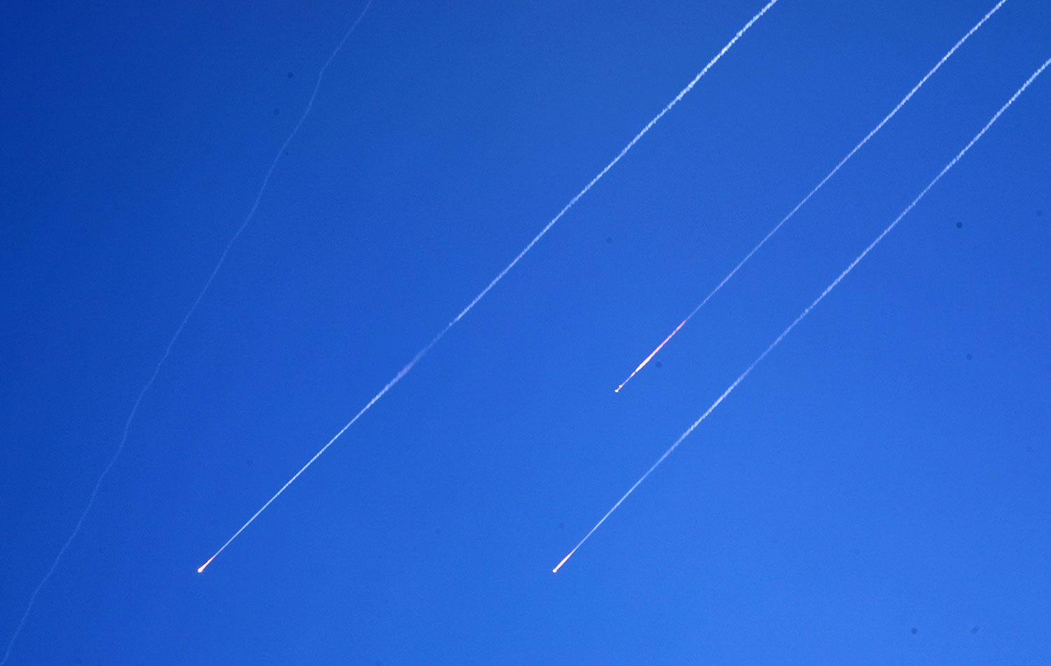 İran'dan İsrail'e ateşlenen füzeler, Batı Şeria'nın El Halil kenti semalarında görüntülendi. / AA