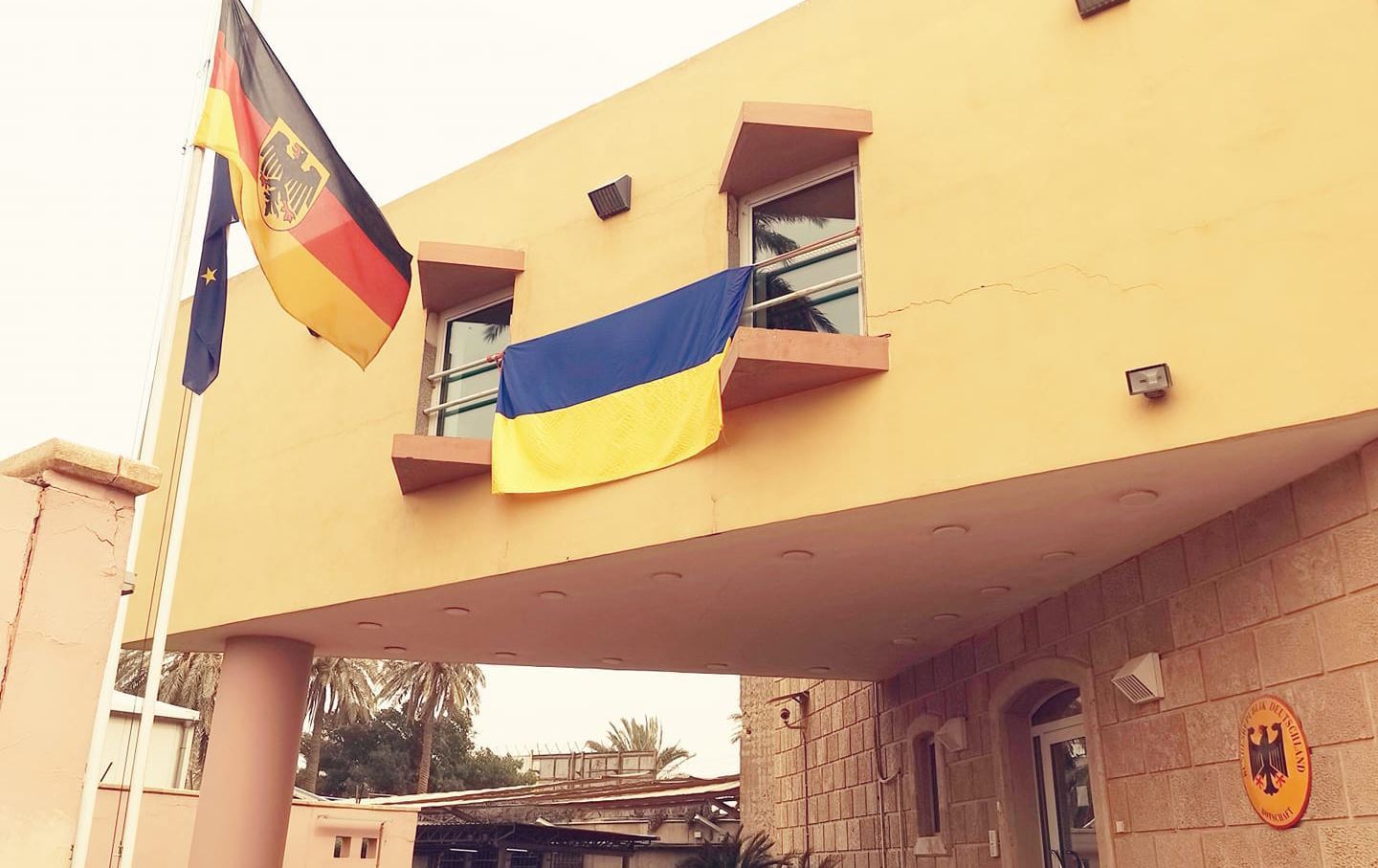 Erbil (Rûdaw) – Almanya’nın Irak'taki Bağdat Büyükelçiliği, Rusya'nın saldırısına uğrayan Ukrayna'ya destek amacıyla büyükelçilik binasına Ukrayna bayrağı astı.