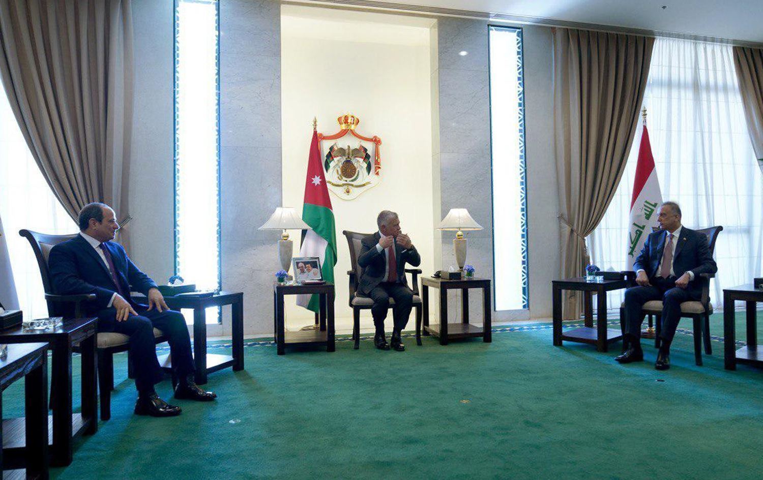 Irak Başbakanı Mustafa Kazımı, Mısır Devlet Başkanı Abdulfettah es-Sisi ve Ürdün II. Kralı Abdullah