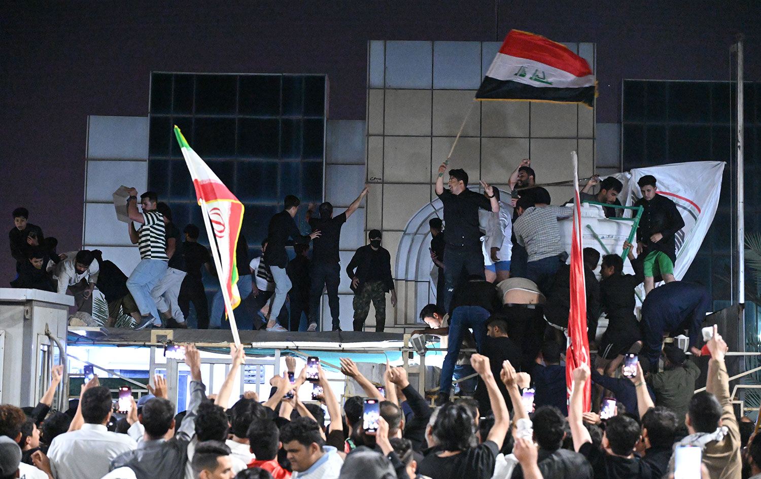 Binaya giren protestocular Kuveyt bayrağını indirdi.
