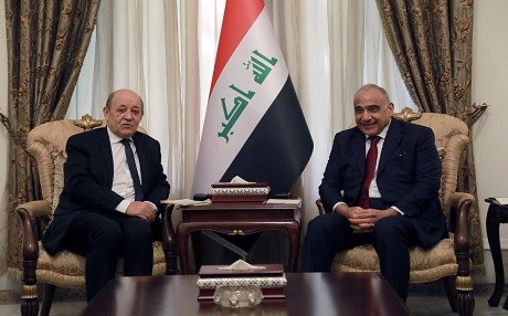 Başbakanlık Ofisi’nden yapılan açıklamaya göre, Adil Abdulmehdi, resmi temaslarda bulunmak üzere Bağdat'a giden Le Drian ve beraberindeki heyeti çalışma ofisinde kabul etti.