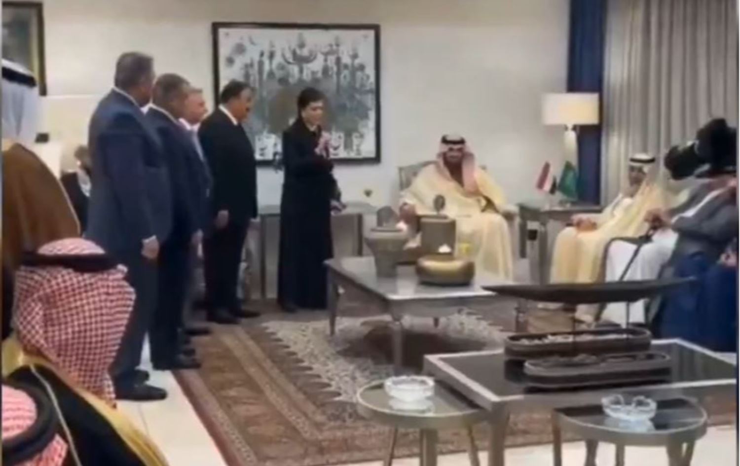 Görüntülerde, Irak'ın Riyad Büyükelçisi Safia al-Suhail ve büyükelçilik personelinin, bir toplantı sırasında birkaç Suudi yetkili otururken ayakta bekletildiği görülüyor.