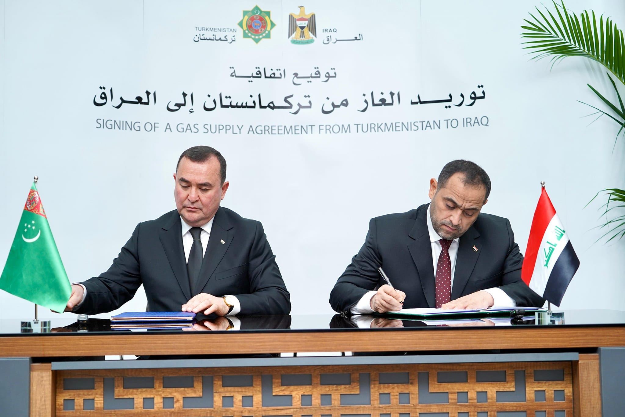 Irak Elektrik Bakanı Ziyad Ali Fazıl ile Türkmenistan Devlet Gaz İşleri Bakanı ve Türkmengaz Devlet Kurumu Başkanı Maksat Babayev bugün başkent Bağdat’ta, Irak’a günlük 10 milyon metreküp doğal gaz tedarikini öngören anlaşmaya imza attı.