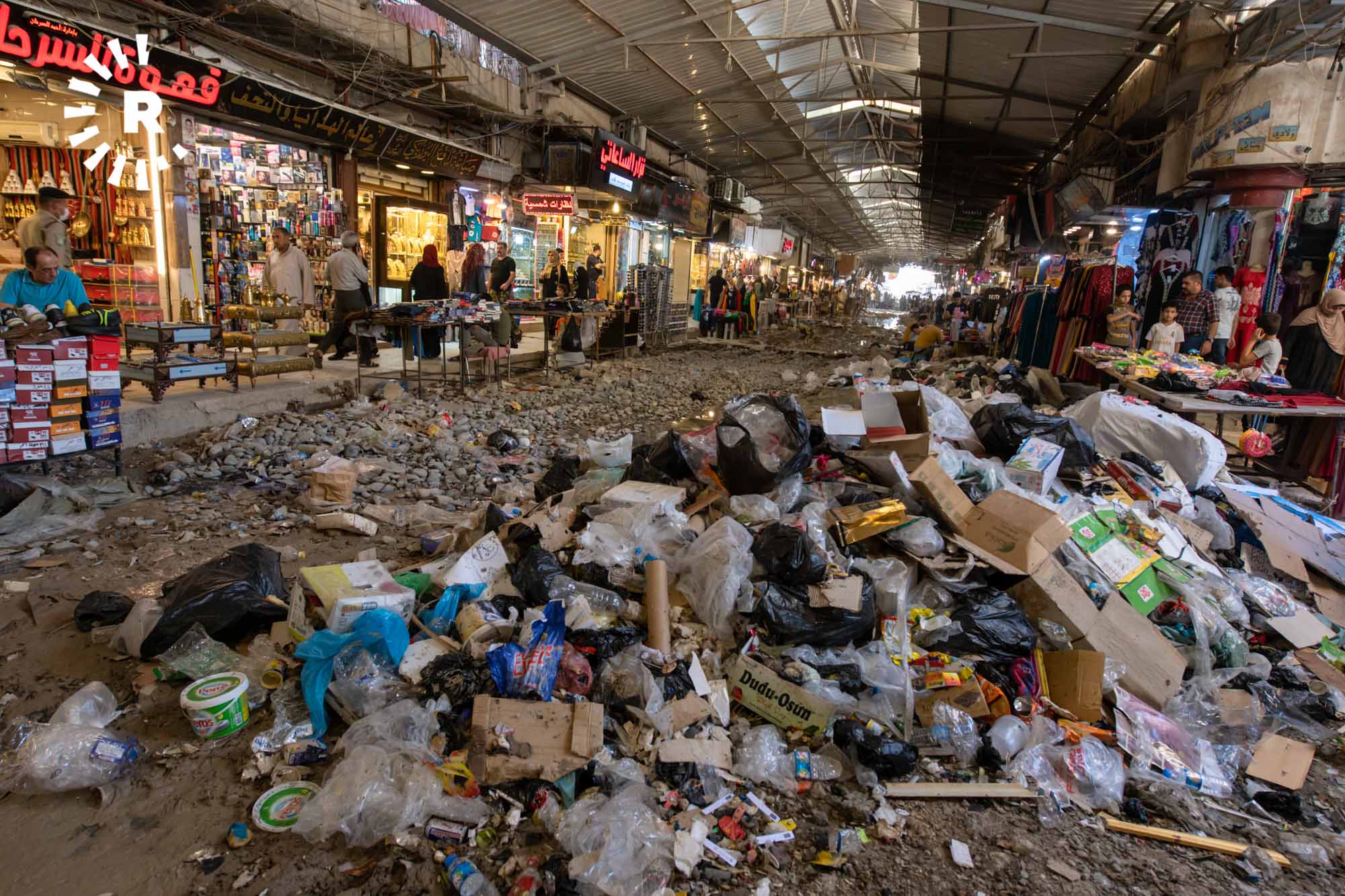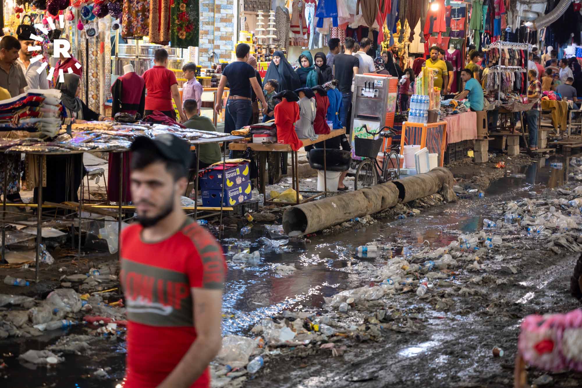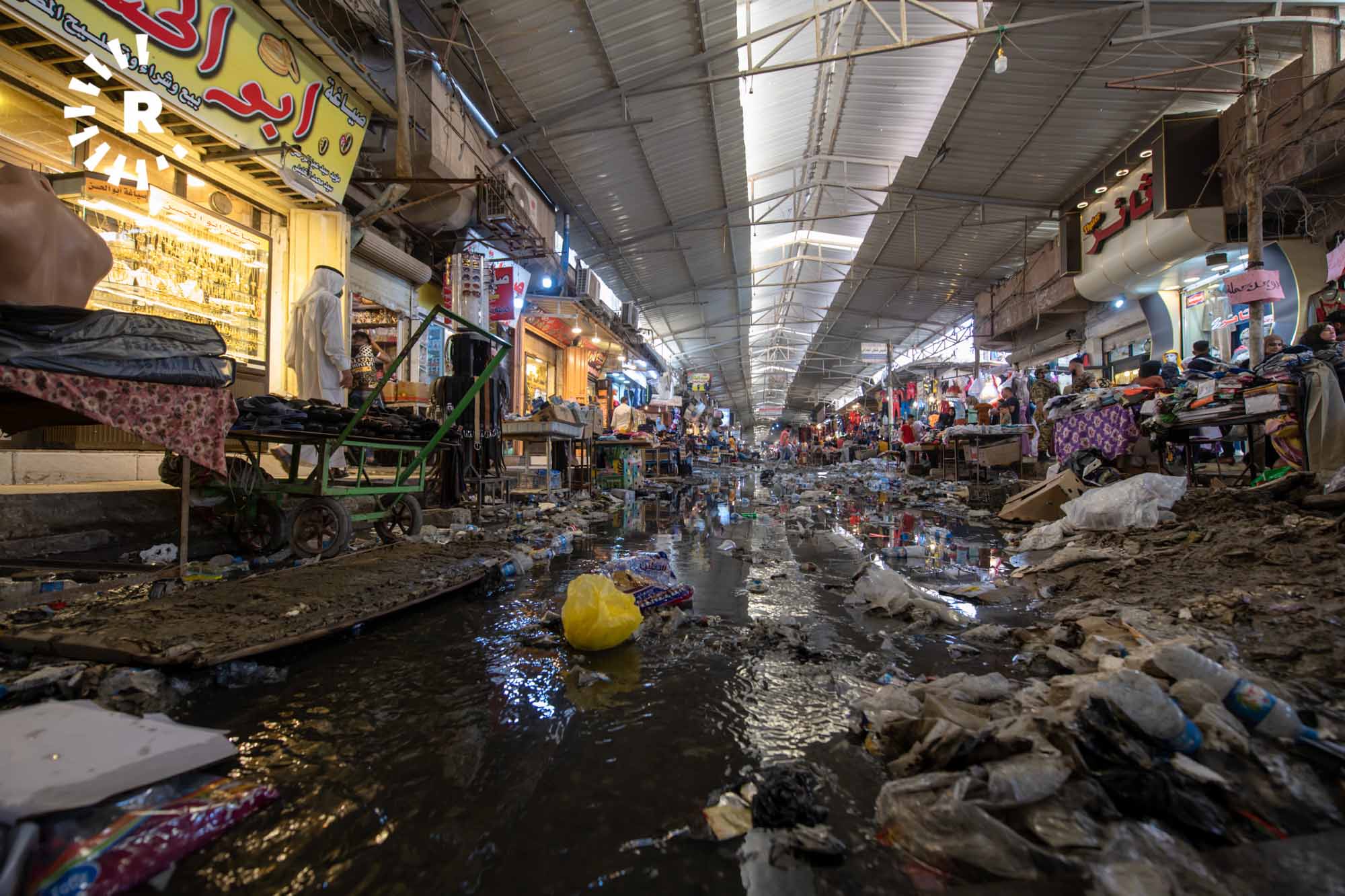 Musul’daki Yunus Peygamber Çarşısı’nda çöp, pislik ve kanalizasyon suyu halkı zor durumda bırakıyor.