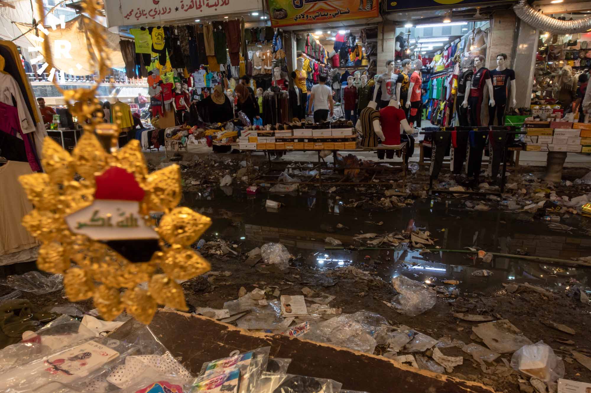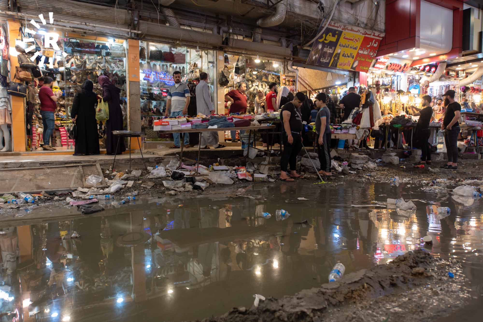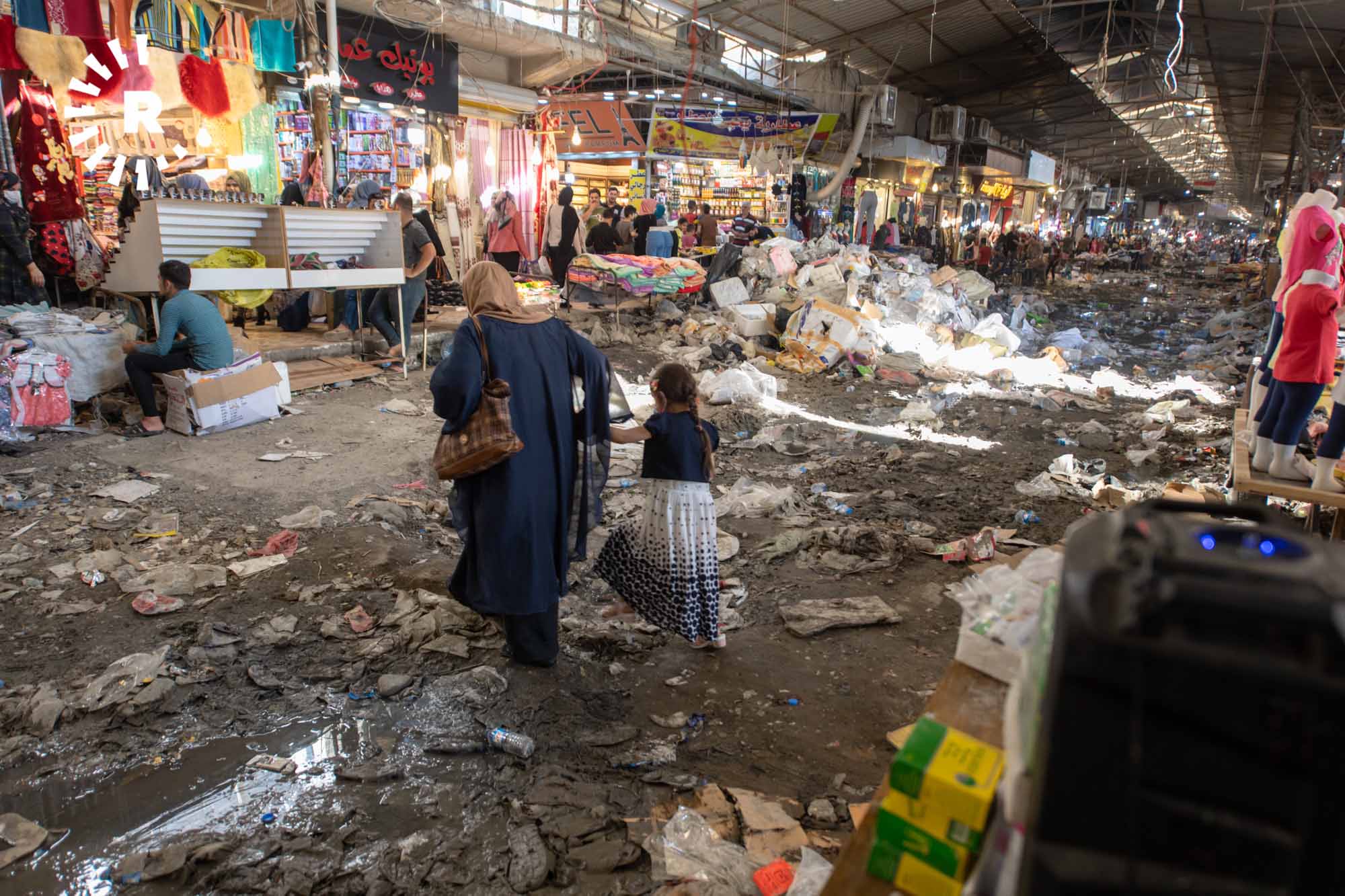 Musul’daki Yunus Peygamber Çarşısı’nda çöp, pislik ve kanalizasyon suyu halkı zor durumda bırakıyor.
