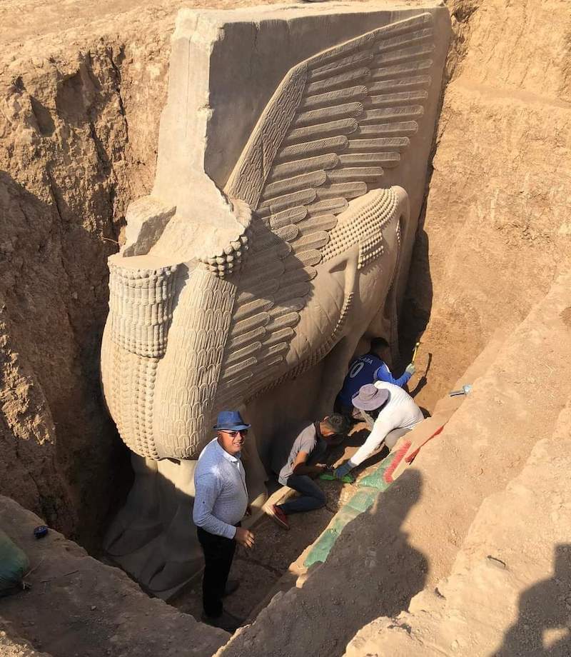 Eski Eserler ve Miras Genel Müdürlüğü, Lamassu kazılarının Musul’un kuzeyindeki Horsabad’ta gerçekleştirildiğini söyledi. Heykel ilk kez 1992 yılında Iraklı bir kazı ekibi tarafından keşfedildi. Anıtsal heykelin kafası 1995 yılında çalındı, ancak daha sonra kurtarıldı ve bulunduğu yer olan Bağdat’taki Irak Ulusal Müzesi’ne yerleştirildi.