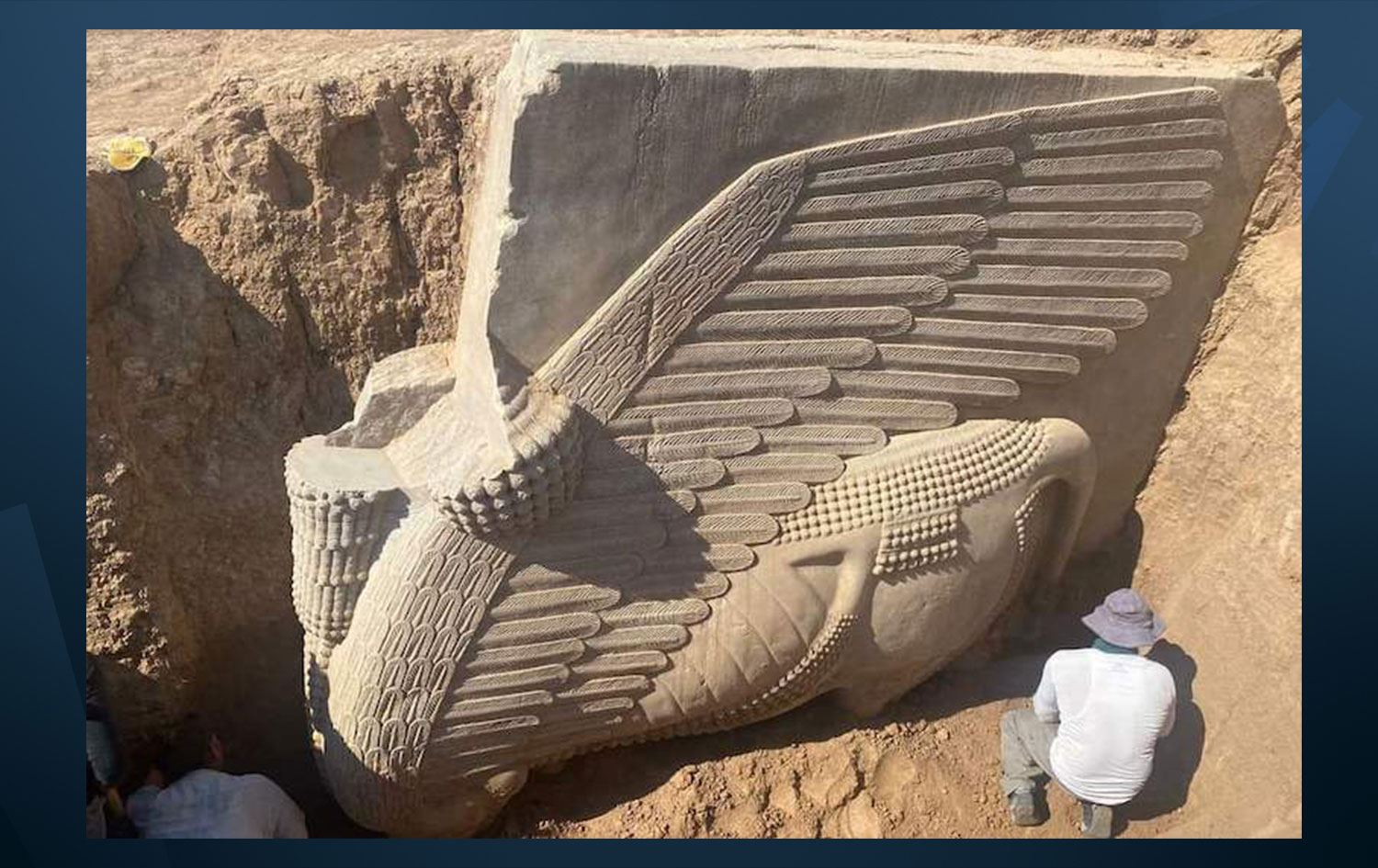 Haber Merkezi - Irak’taki arkeologlar, daha önce baş kısmı çıkarılarak kaçırılan devasa Lamassu kabartmasının gövdesini Musul’da yapılan kazıda ortaya çıkardı.