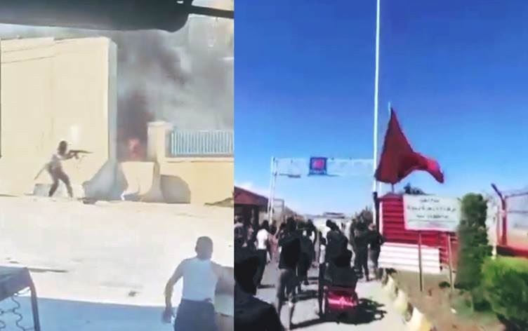 Efrin'de Türkiye'yi protesto eden silahlı gruplar Türkiye'nin kurduğu karakolu ateşe verdi