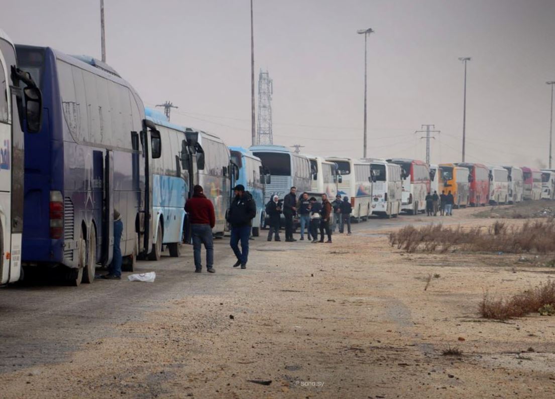 Öte yandan Halep'i terk etmesi beklenen Asayiş güçlerini taşıyacak çok sayıda otobüs, Leramun Kavşağı'nda toplanmaya başladı.