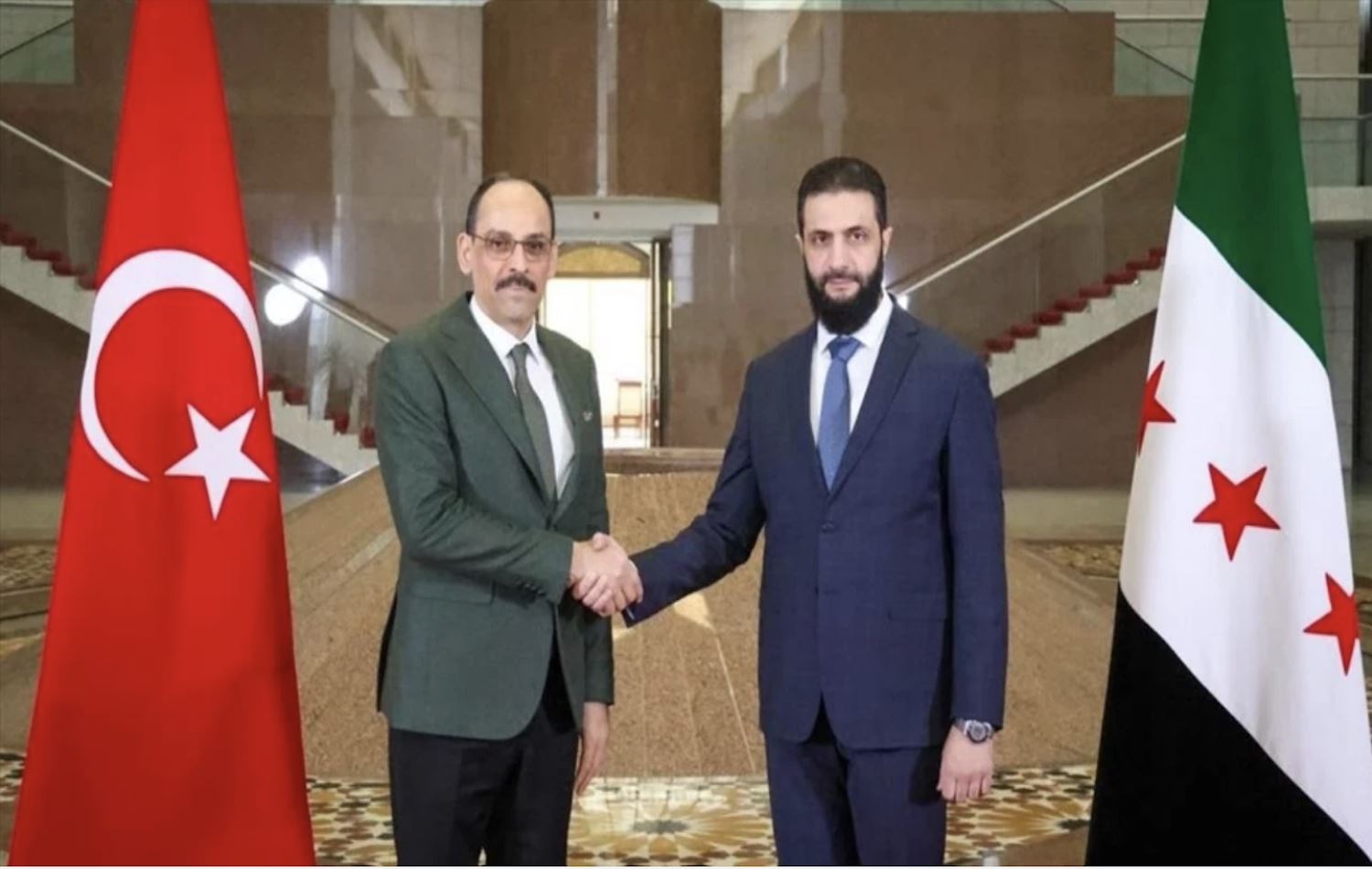 Güvenlik kaynaklarından alınan bilgiye göre Kalın, Suriye'nin geçici Cumhurbaşkanı Ahmed Şara tarafından kabul edilecek.