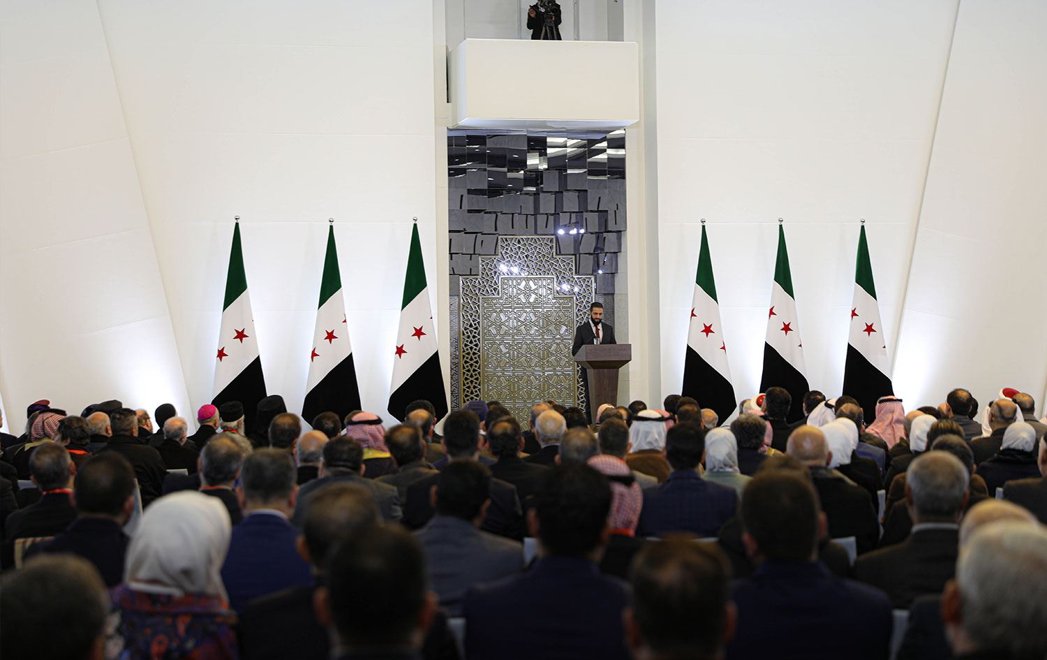 Suriye Ulusal Diyalog Kongresinde Geçici Hükümet Cumhurbaşkanı Ahmed Şara konuşuyor / Foto: AA