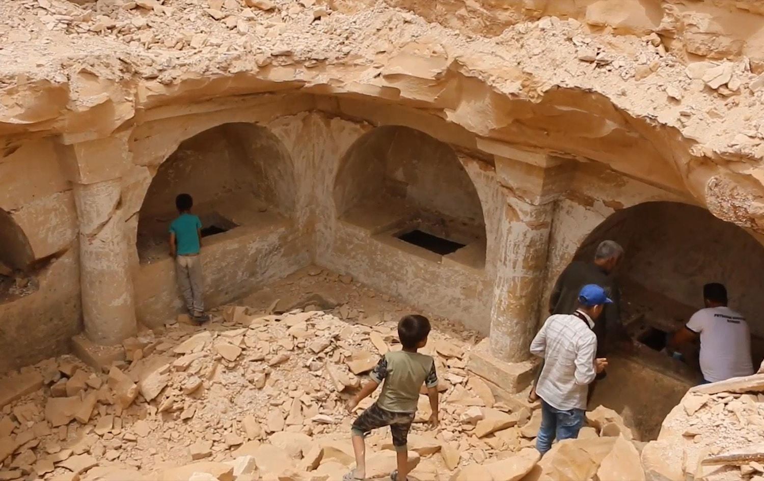 Suriye'nin İdlib vilayetindeki Maarrat el-Numan kentinde yaşayan bir vatandaş, evini yenilemek isterken 14 yüzyıldan daha eskiye dayanan ve Bizans dönemine ait olduğu değerlendirilen tarihi bir mezarlık keşfetti.