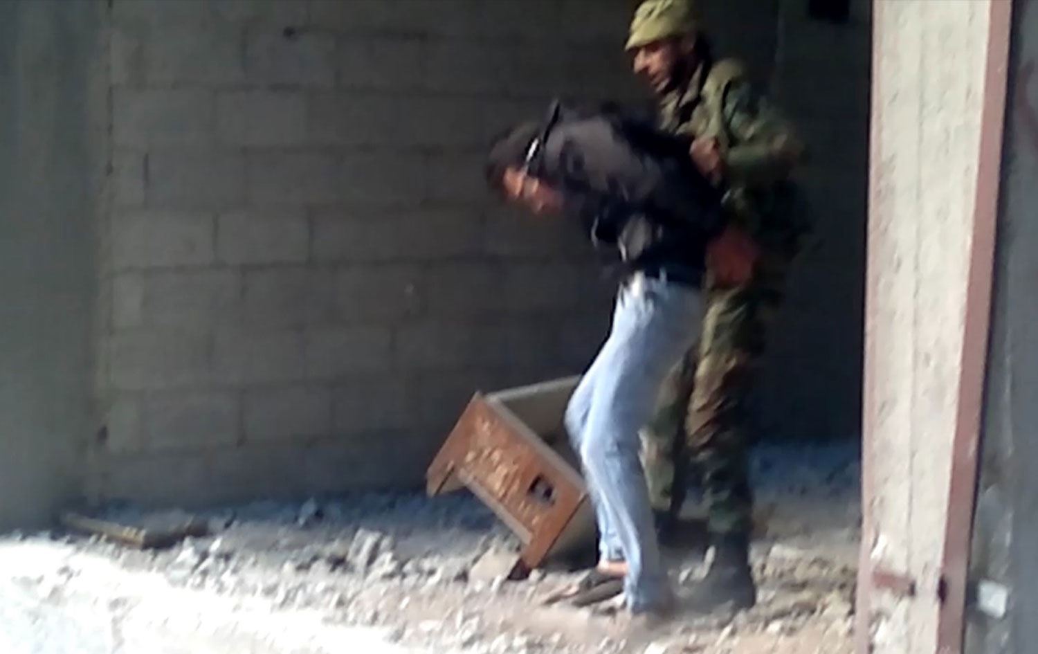 Burada bir Suriye devlet askeri birimi, silahsız, gözleri bağlı sivilleri bir infaz çukurunda infaz ediyor ve sonra cesetlerini yakıyor ve bu çukuru dolduruyor. Amjad hala vahşetiyle tanınan Birim 227'de görev yapan bir askeri istihbaratçı."