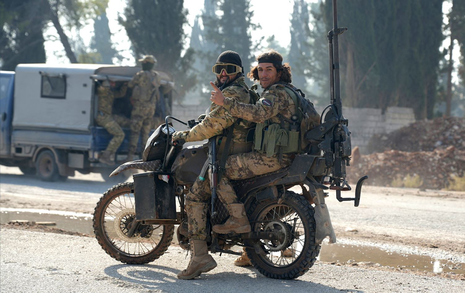 Sahada HTŞ ve müttefikleri, Suriye’de rejim güçlerine karşı savaşıyor.