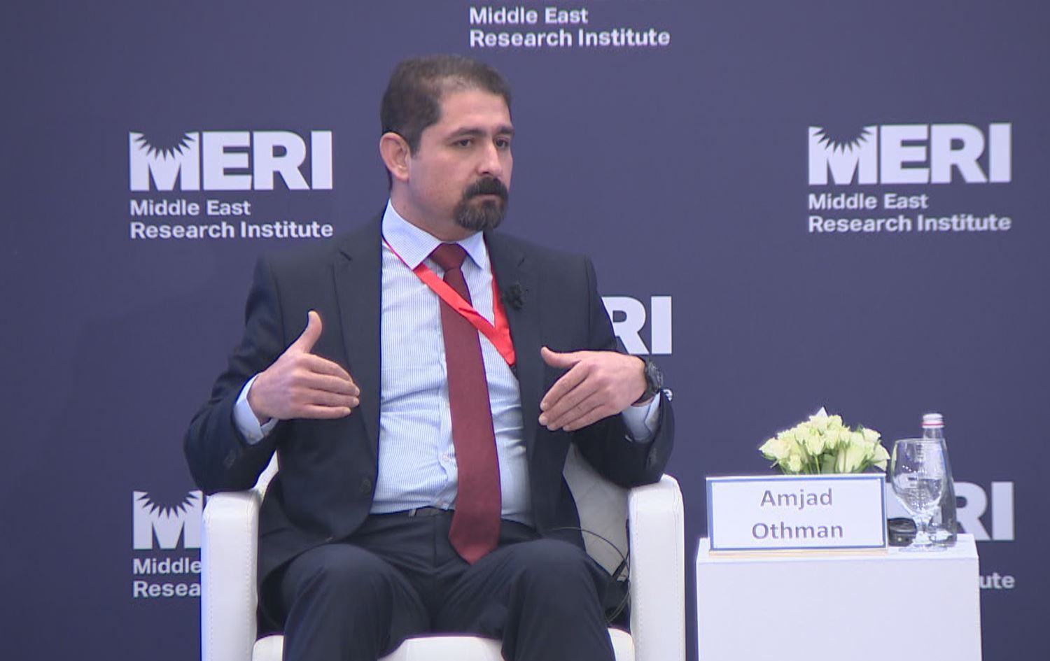 Erbil'de Rûdaw sponsorluğunda düzenlenen "MERI 2024" forumunun ikinci gününde, "Suriye'nin geleceği: Barış ve yeniden inşa olanakları" başlıklı panelde Rojava Yönetimi bölgesine kurulan Demokratik Suriye Meclisi (DSM) Üyesi Emced Osman bir konuşma yaptı.