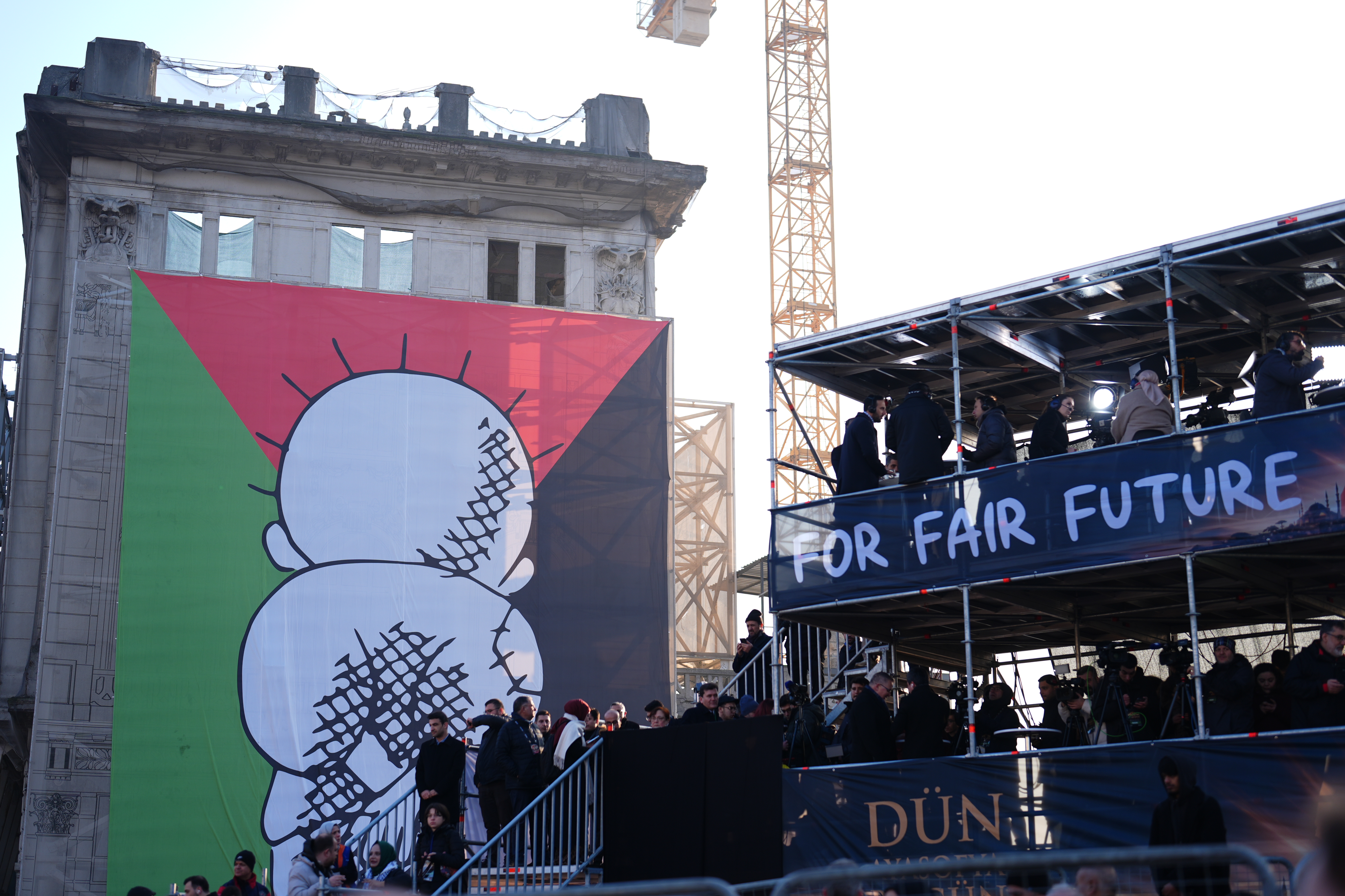 Program öncesinde Galata Köprüsü'nü gören binalardan birine karikatürist Naci el-Ali'nin Hanzala karakterinin resmedildiği afiş asıldı. Galata Köprüsü'nde ise programa katılanlar tarafından metrelerce uzunlukta Türk bayrağı açıldı.