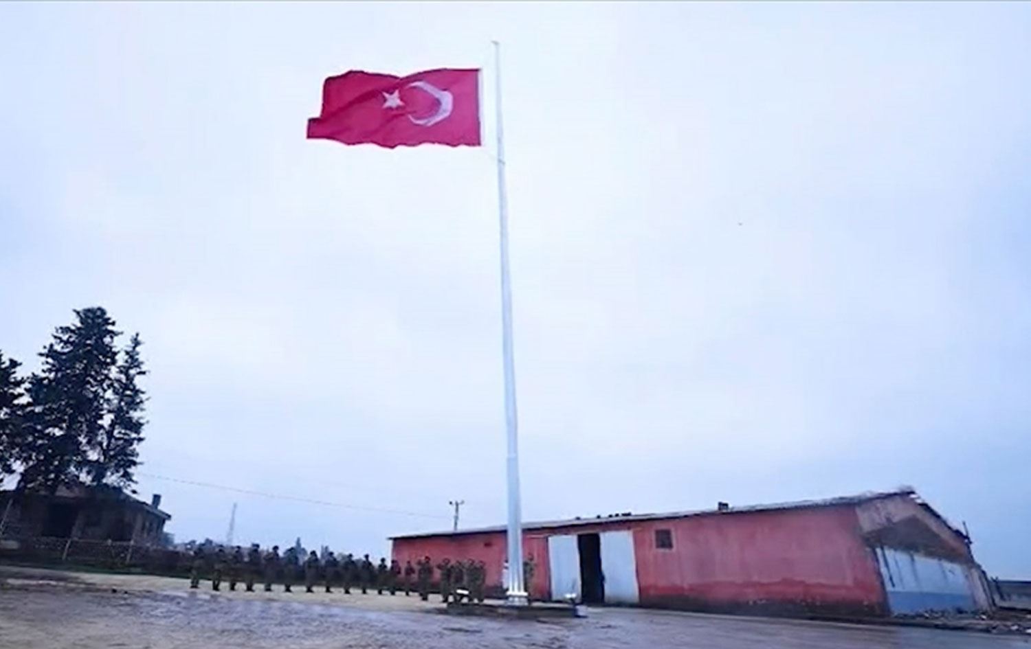Kamışlo kentinin Türkiye'ye en yakın noktası olan alanda güvenlik önlemlerinin alınmasının ardından, 30 metre uzunluğunda bir bayrak direği yerleştirildi ve Türk bayrağı göndere çekildi.