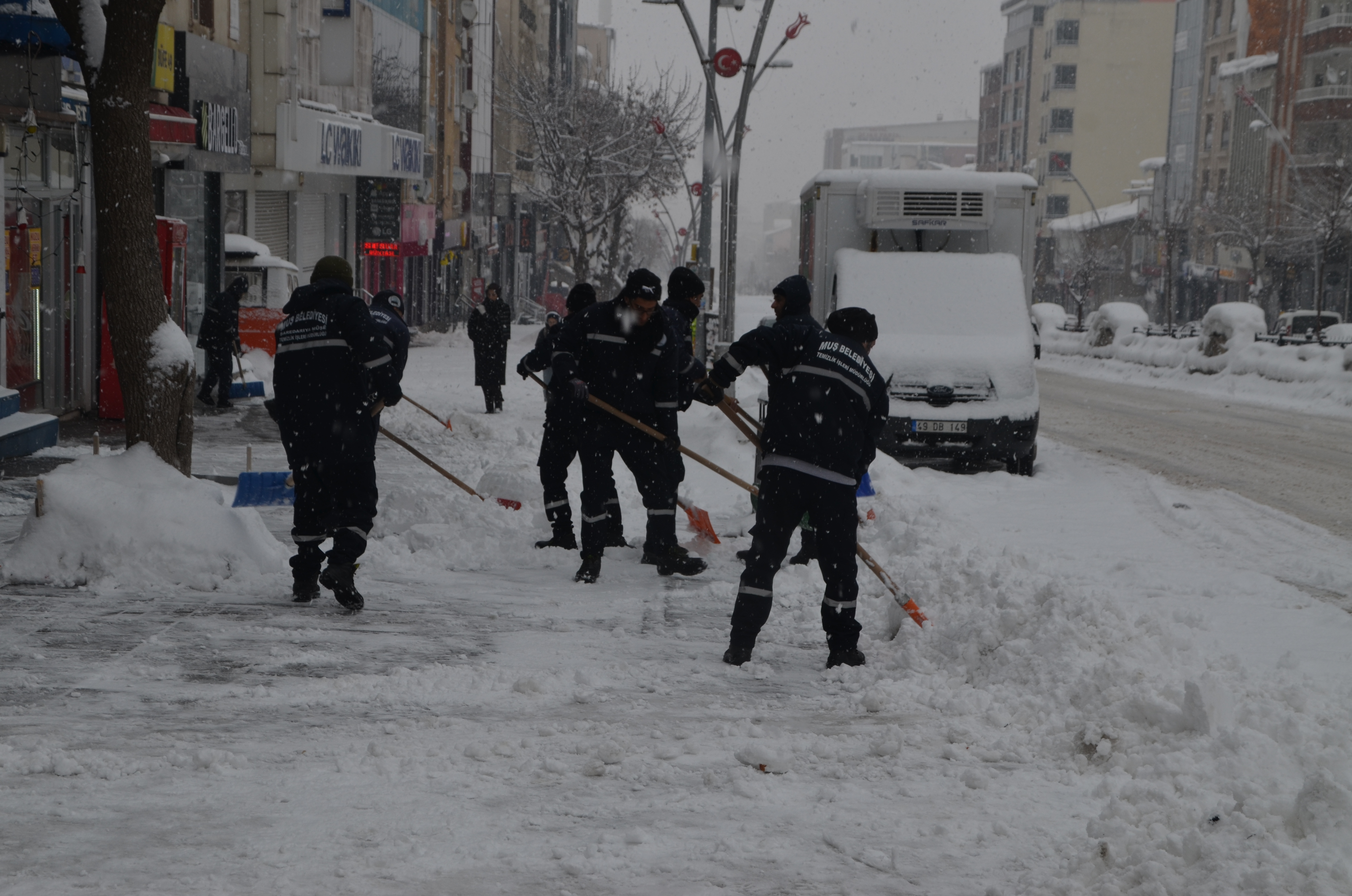 Bitlis kent merkezinde de belediye ve Karayolları ekipleri yol ve caddeleri temizliyor.