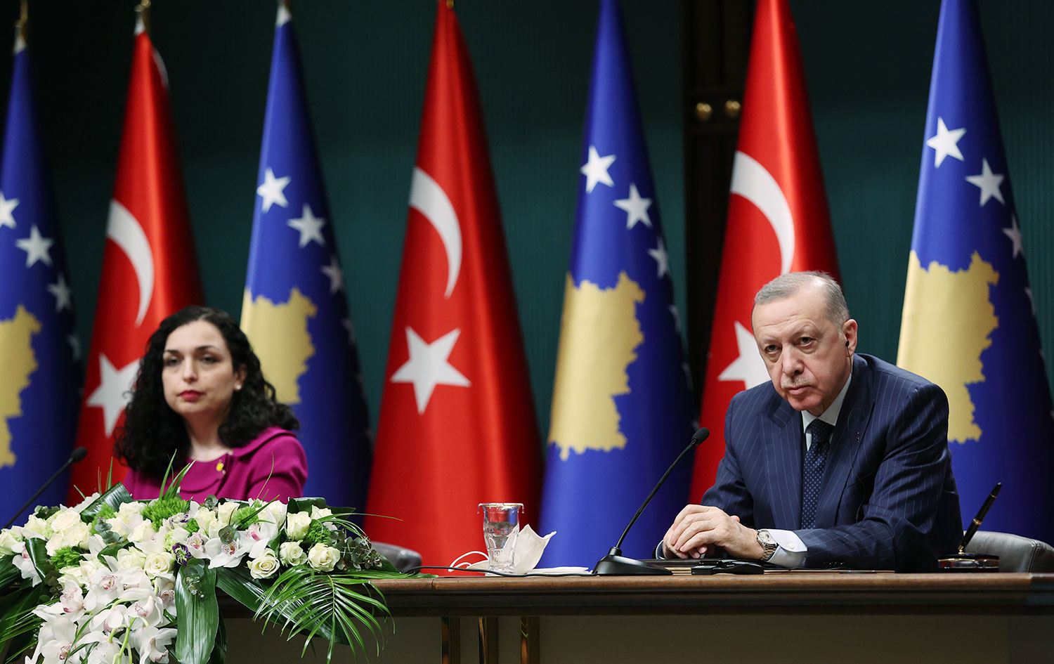 Erdoğan ve Kosova Cumhurbaşkanı Vjosa Osmani ile Beştepe’de yaptıkları baş başa ve heyetler arası görüşmeler ile anlaşmaların imza töreninin ardından ortak basın toplantısı düzenledi.