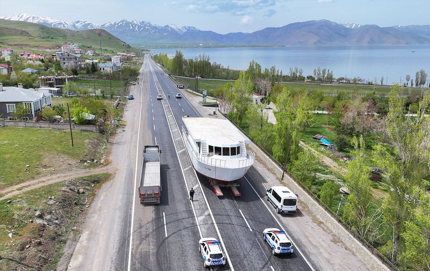 Bunun üzerine il dışından getirilen özel dorseli tıra yüklenen tekne, alınan izinlerin ardından trafik ekiplerinin kontrolünde Van-Bitlis kara yolunda 4 kilometre taşınarak Van Gölü'nün kıyısına götürüldü.
