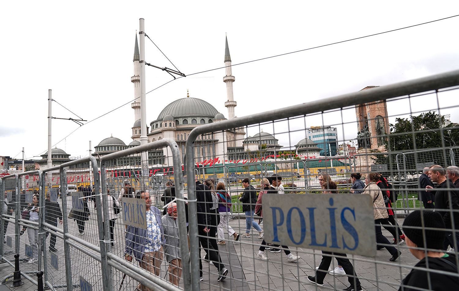 Öte yandan meydandan Tünel'e kadar İstiklal Caddesi'ne açılan tüm cadde ve sokaklar, demir bariyerlerle kapatıldı. Her cadde ve sokağın başında polis ekipleri nöbet tutuyor. İstiklal Caddesi'ndeki esnaf ve turistlerin dışında geçişlere izin verilmiyor.