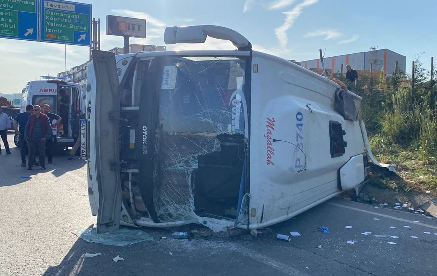 Alınan bilgiye göre, D-100 kara yolu Ankara istikameti Tavşanlı mevkisi Kuzey Marmara Otoyolu yol ayrımında, işçileri taşıyan midibüs, önünde seyreden ve sürücüsünün ismi öğrenilemeyen tıra çarparak devrildi.