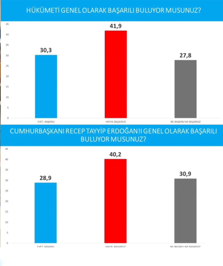 “Cumhurbaşkanı Recep Tayyip Erdoğan’ı genel olarak başarılı buluyor musunuz?” sorusuna yurttaşların yüzde 40’ı “başarısız buluyoruz” yanıtını verdi: