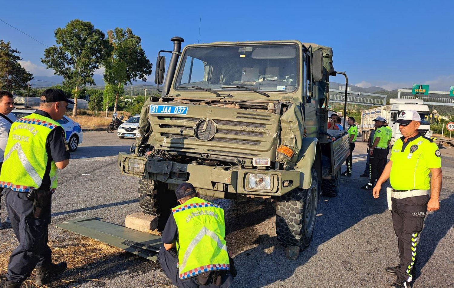 Alınan bilgiye göre, askeri araç, Dörtyol'dan İskenderun’a doğru seyreden H.Ç.’nin kullandığı 51 HC 358 plakalı TIR’a arkadan çarptı.