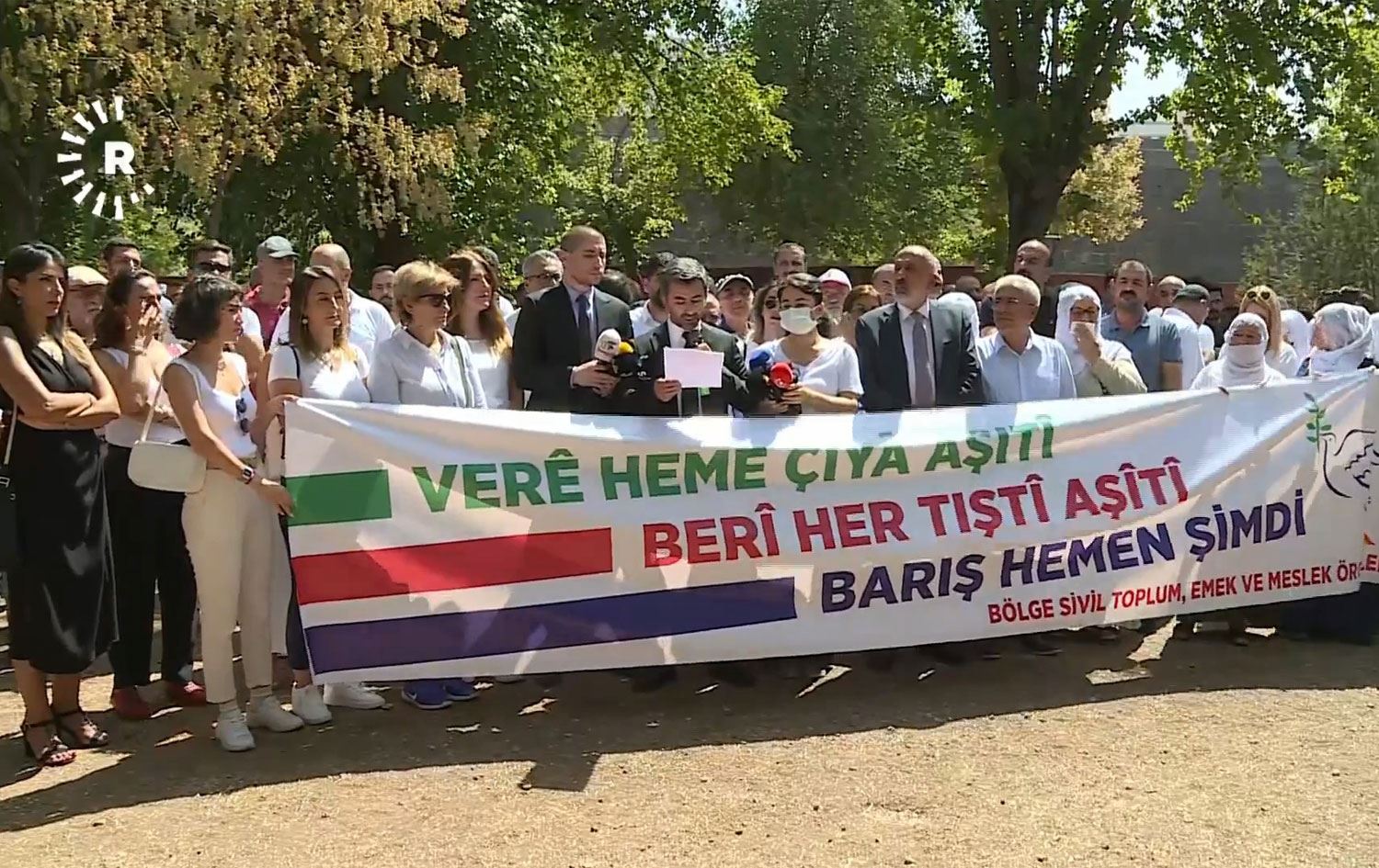 Diyarbakır (Rûdaw) - Diyarbakır’da bulunan sivil toplum örgütleri ve meslek örgütleri, Kürt meselesinin barışçıl ve demokratik bir zeminde çözümü; çatışmasızlık ortamının sağlanması için tüm aktörleri, toplumsal ve siyasi dinamikleri üzerine düşen sorumluluğu yerine getirmeye çağırdı.