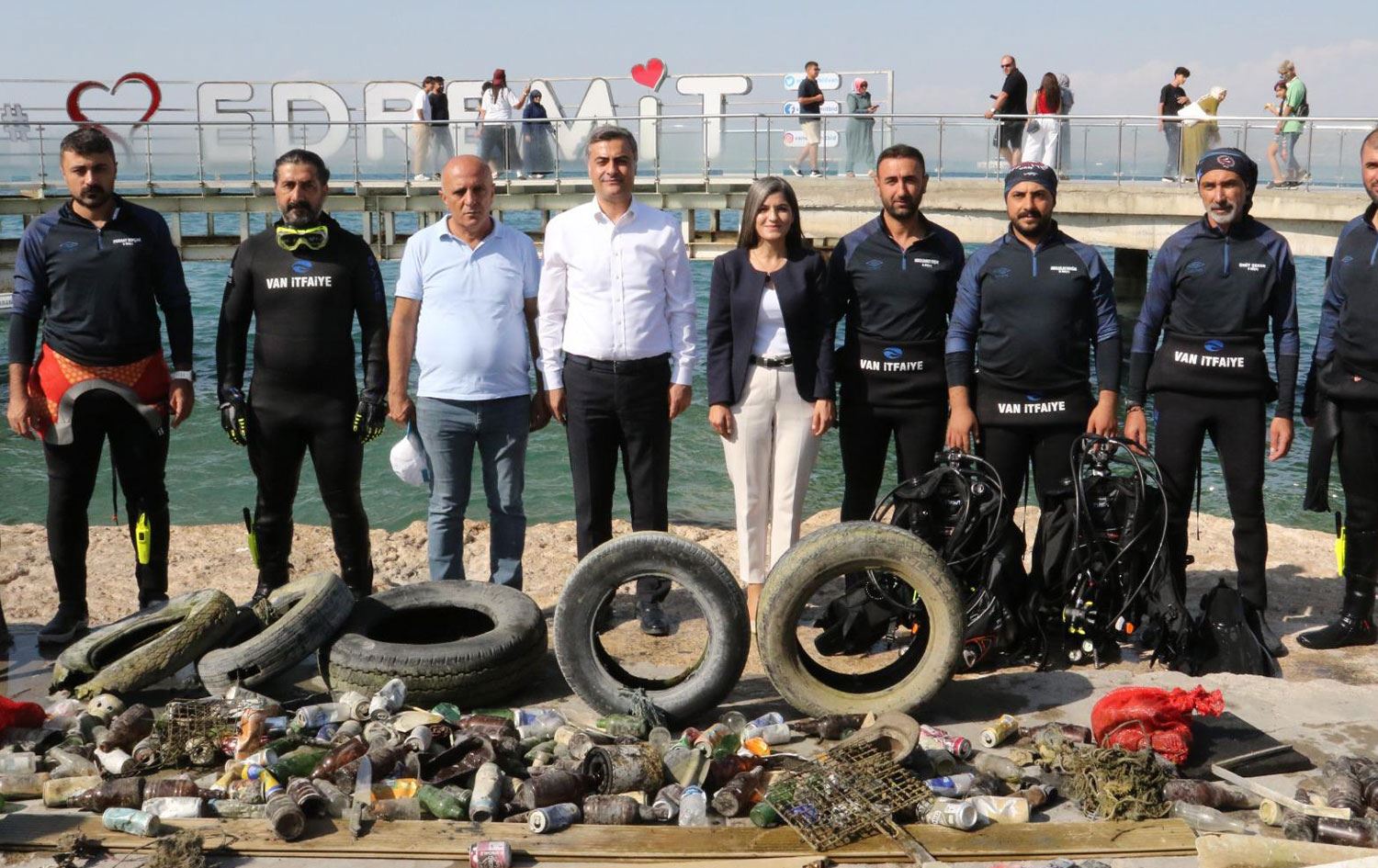 Temizlik kampanyasının Edremit ayağında Van Gölü’ne dalış yapan İtfaiye Daire Başkanlığı’na bağlı Sualtı Arama Kurtarma ekipleri, taradığı küçük bir alanda kilolarca çöp çıkardı.
