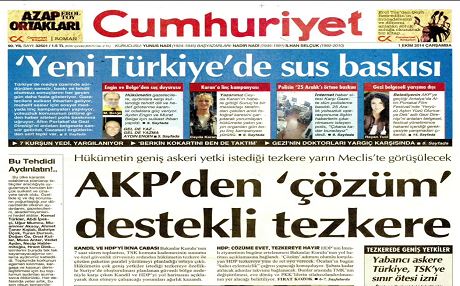 Cumhuriyet gazetesi, iki gelişmeyi Cumhuriyet “AKP’den ‘çözüm’ destekli tezkere” başlığıyla haberleştirdi. Haberde hükümetin tezkere ile çözüm paketini paralel yürütmeyi planladığı belirtilerek, şöyle denildi:
