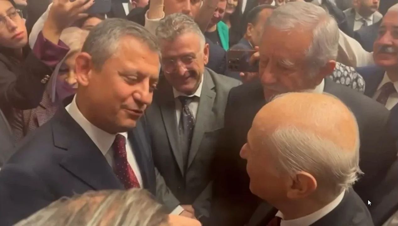 CHP Genel başkanı Özgür Özel ve MHP Genel Başkanı Devlet Bahçeli, TBMM'nin yeni yasama yılının açılışı kapsamında düzenlenen resepsiyonda selamlaştı.