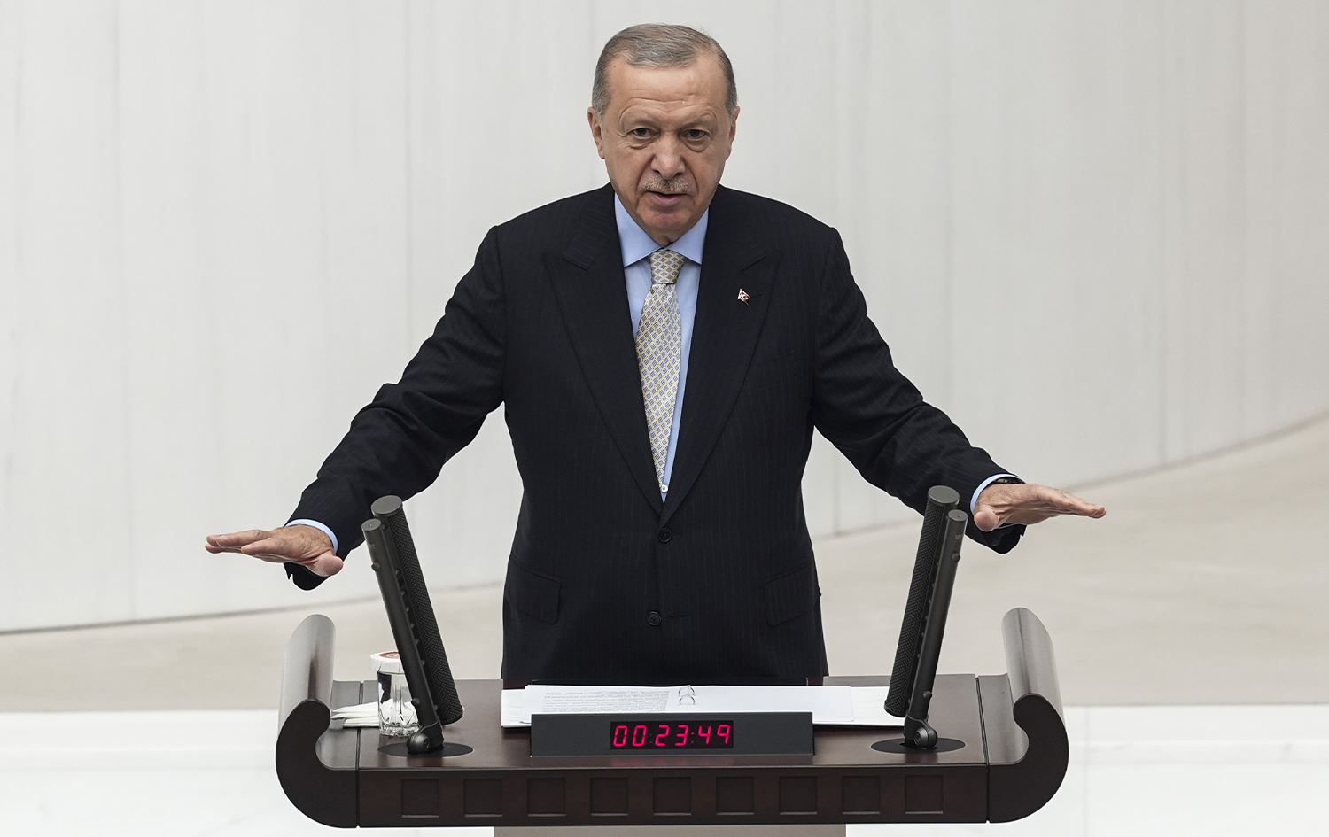 Törenin ardından Meclis kürsüsünde konuşan Erdoğan, "Önümüzdeki yaklaşık 10 ay boyunca, teklifleriyle, önergeleriyle, ufuk açıcı değerlendirmeleriyle, yasama faaliyetlerine katkı sunacak her bir parlamenterimize şimdiden minnettarlığımızı belirtiyorum. Her zaman söylediğimiz gibi, aslolan milletin ve memleketin eserleridir" dedi.