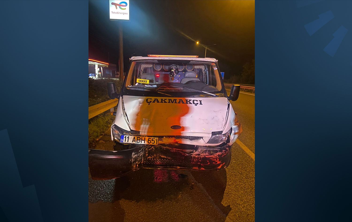 Enes A. (23) yönetimindeki 11 ABH 651 plakalı çekici, Bozüyük-İnegöl kara yolunda Taner C. (60) idaresindeki 16 BG 443 plakalı hafif ticari araca arkadan çarptı.