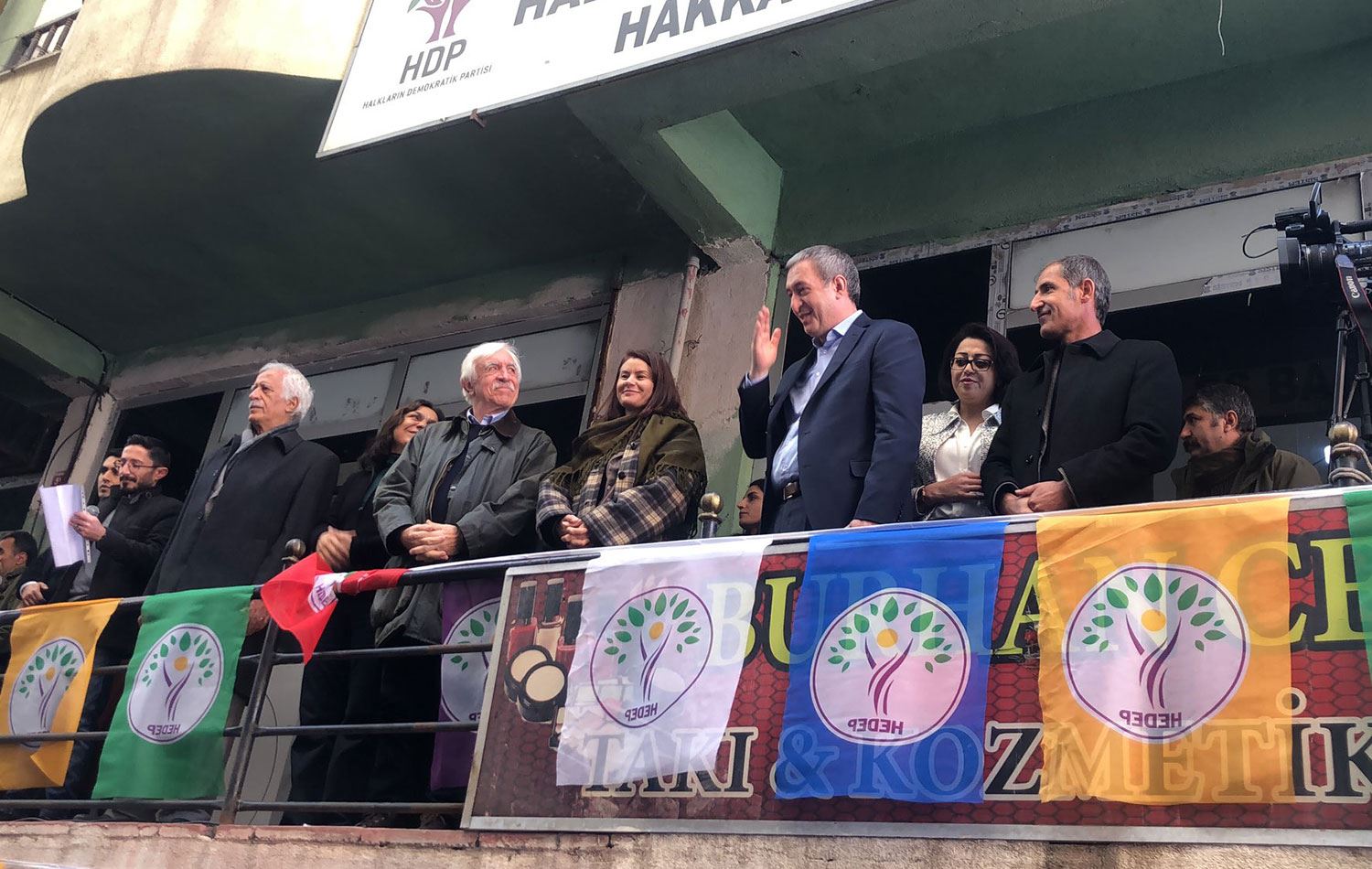 Parti binası önünde toplanan halka seslenen Bakırhan kazandıkları belediyelere kayyım atanmasın adeğindi ve yerel seçimlerde belediyeleri yeniden kazanacaklarını kaydetti.