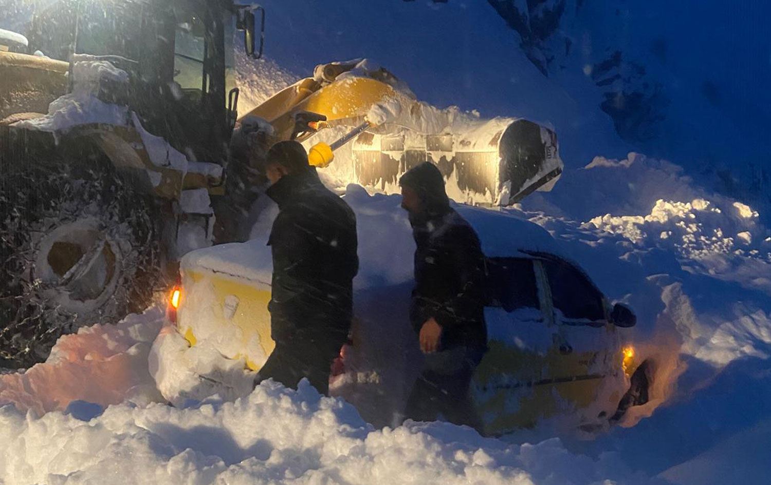 İlçenin Şapatan Geçidi yakınında seyir halinde olan taksi, yoğun kar nedeniyle düşen çığın altında kaldı.