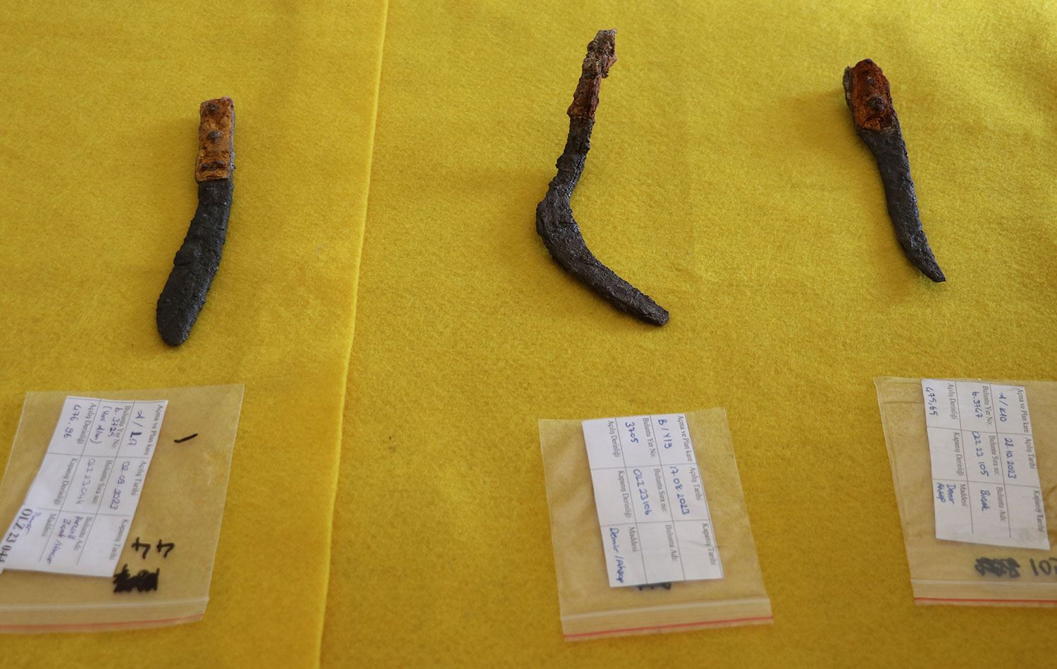 Dönmez, "Bunların başında Med ve Pers dönemlerine ait kesiciler, bıçaklar belki de hançer olabilecek eserler geliyor. Bunları teknik olarak gözlemlediğimiz zaman demirden yapılmış olduklarını görüyoruz. Ahşap sapların hala günümüze kadar sağlam bir şekilde varlıklarını sürdürdüğünü gözlemleyebiliyoruz ve bunların da yine günümüzdeki perçinlerle ahşap sapın üzerine tutturulmuş olduğunu anlayabiliyoruz” dedi.