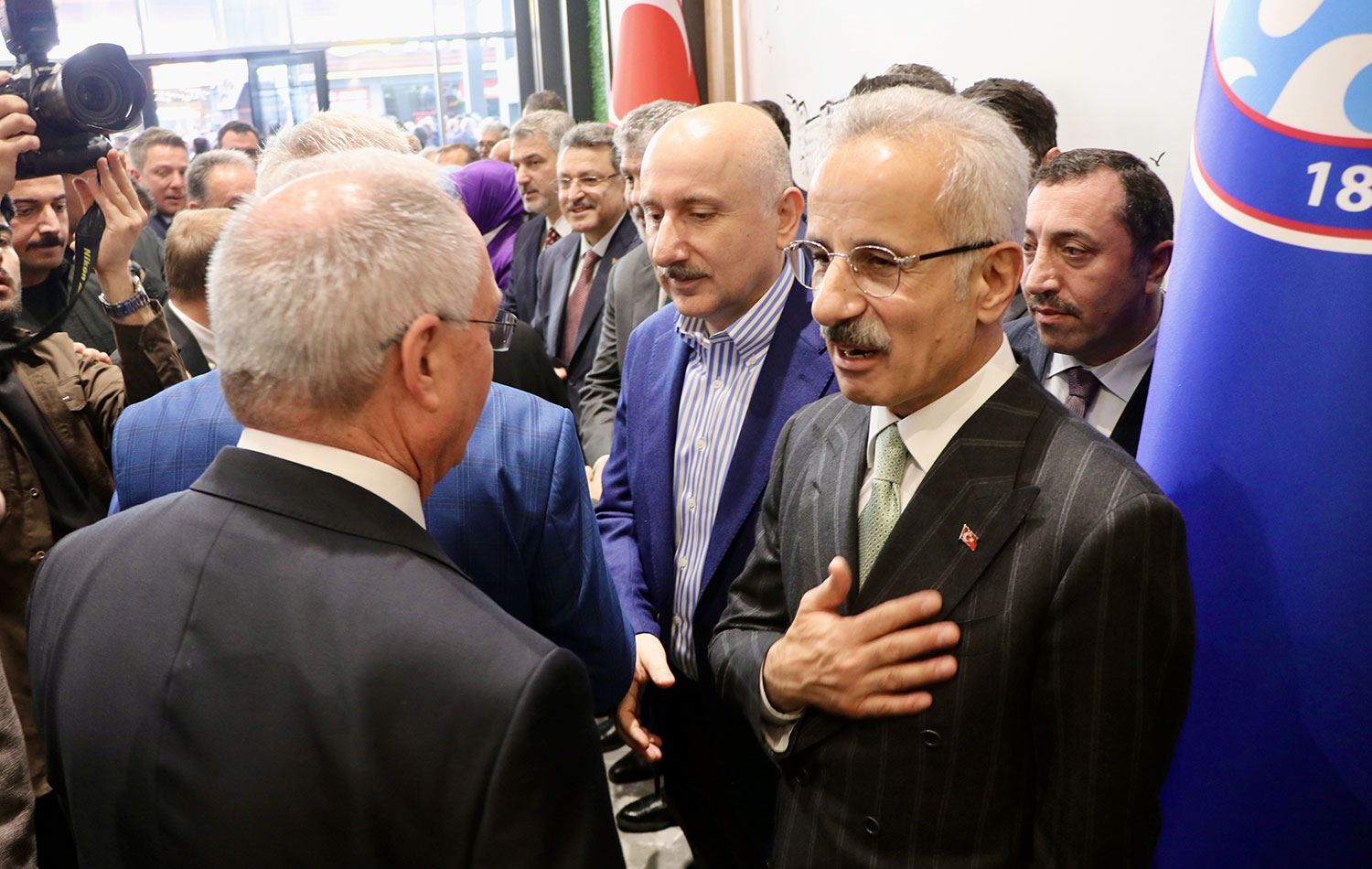 Ulaştırma ve Altyapı Bakanı Abdulkadir Uraloğlu (sağda), Trabzon Büyükşehir Belediyesi'nde düzenlenen bayramlaşma programlarına katıldığı sırada. / AA